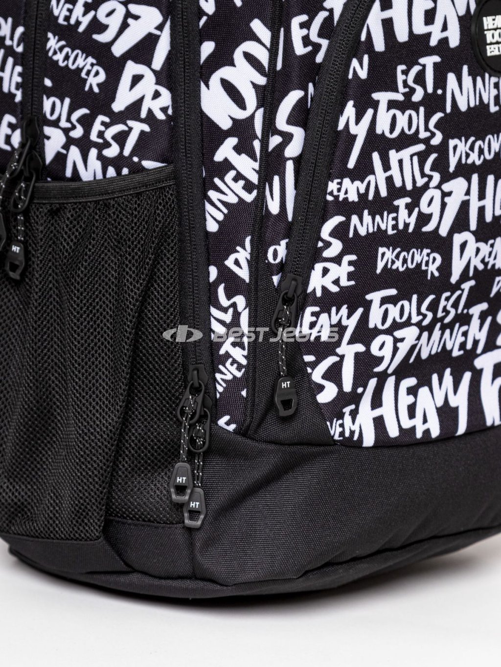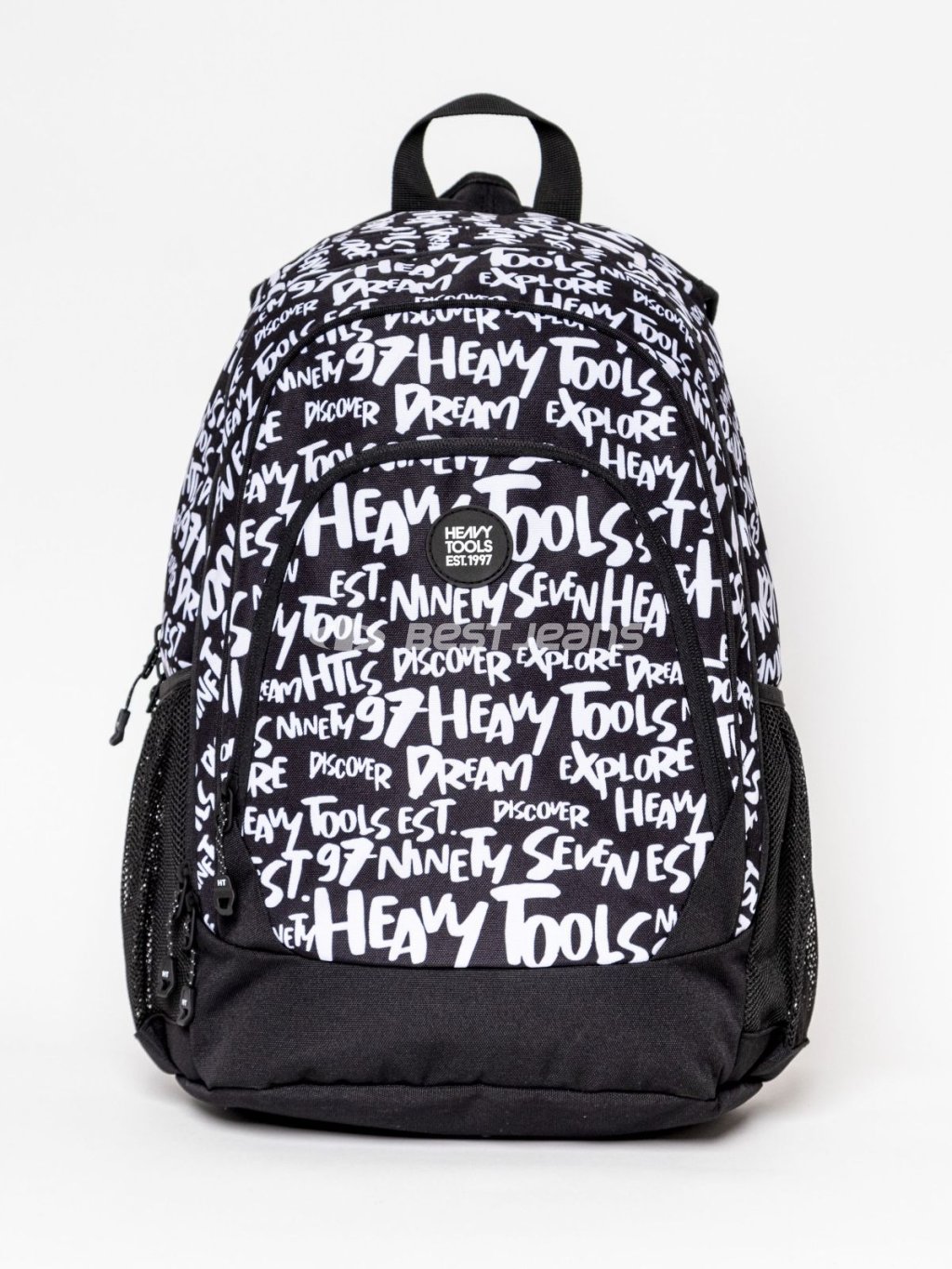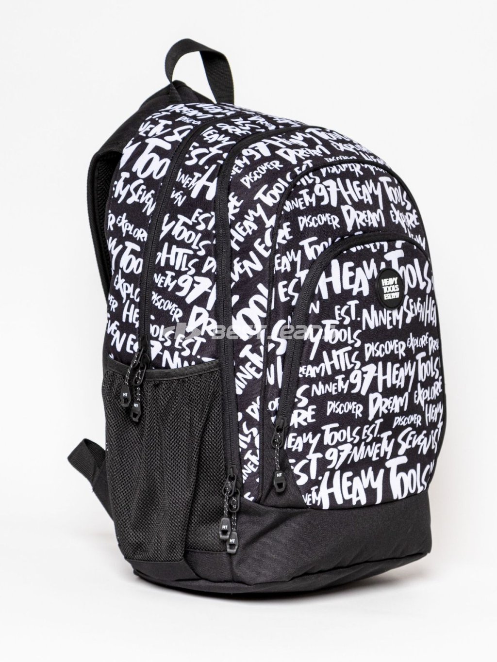 Školní batoh Heavy Tools. Dvě komory, přední kapsa na zip, organizér, zadní kapsa na zip, ergonomicky tvarovaný zádový systém, boční síťka na láhev, vyztužené ramenní popruhy. Rozměry: 32x47x19 cm, maximální nosnost: 15 kg.