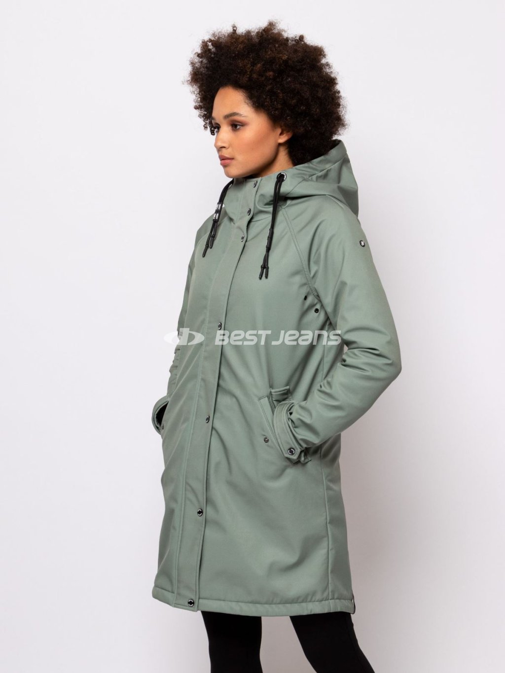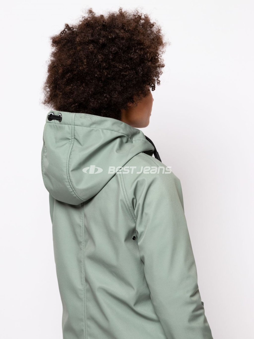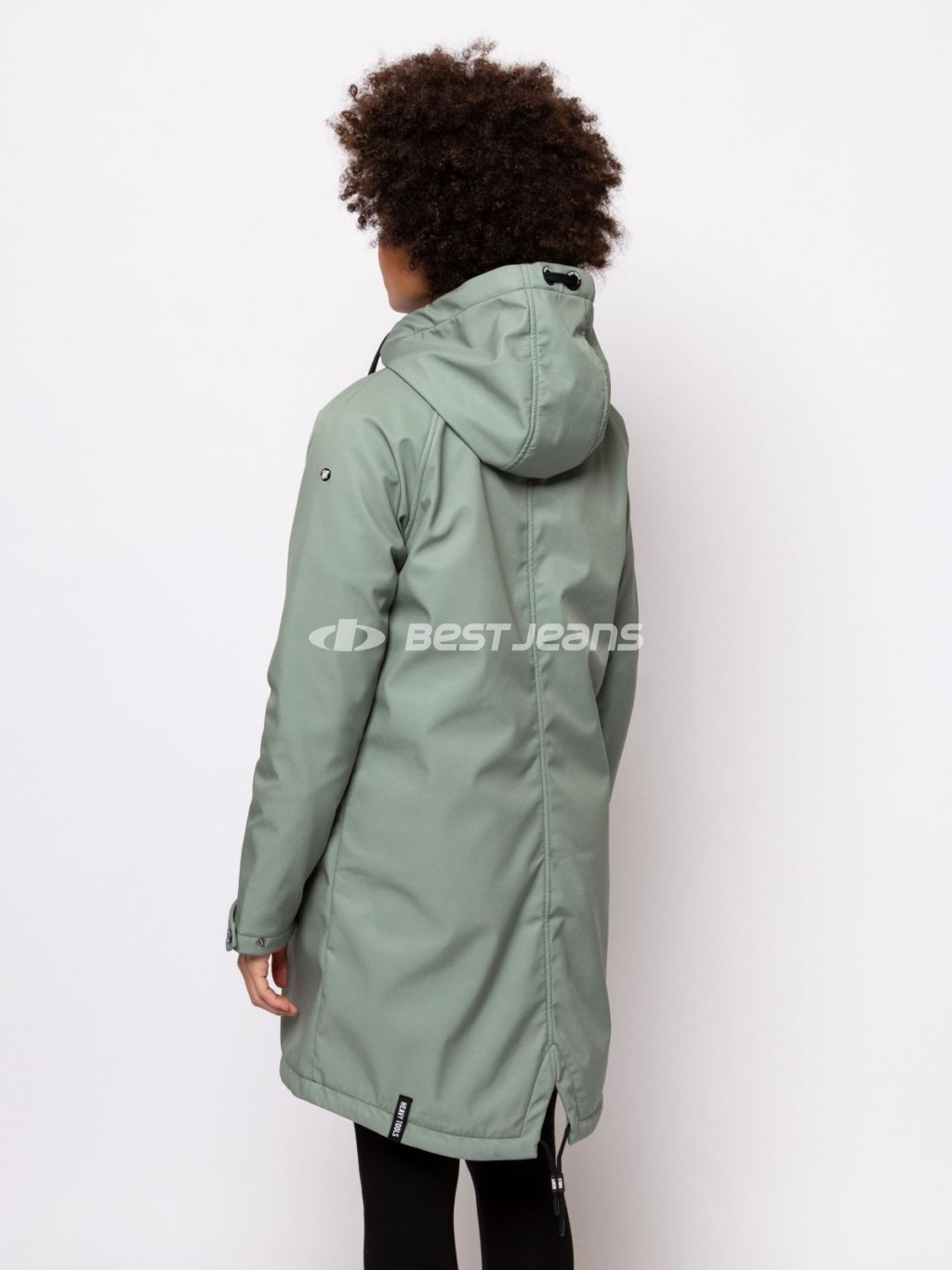 Dámská dlouhá softshelová bunda Heavy Tools se stojáčkovým límcem a nastavitelnou kapucí, na zip a se dvěma bočními kapsami. Povrchový materiál mírně odolný vodě a větru, ochranná lišta proti větru s patentkami.