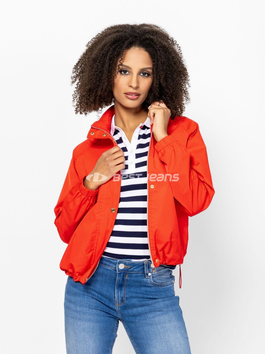 Dámská větrovka Heavy Tools se stojáčkem, zapínáním na zip a stahovací šňůrkou ve spodním lemu. Látka polyesterový kepr. Modelka měří 175 cm a nosí velikost S.
