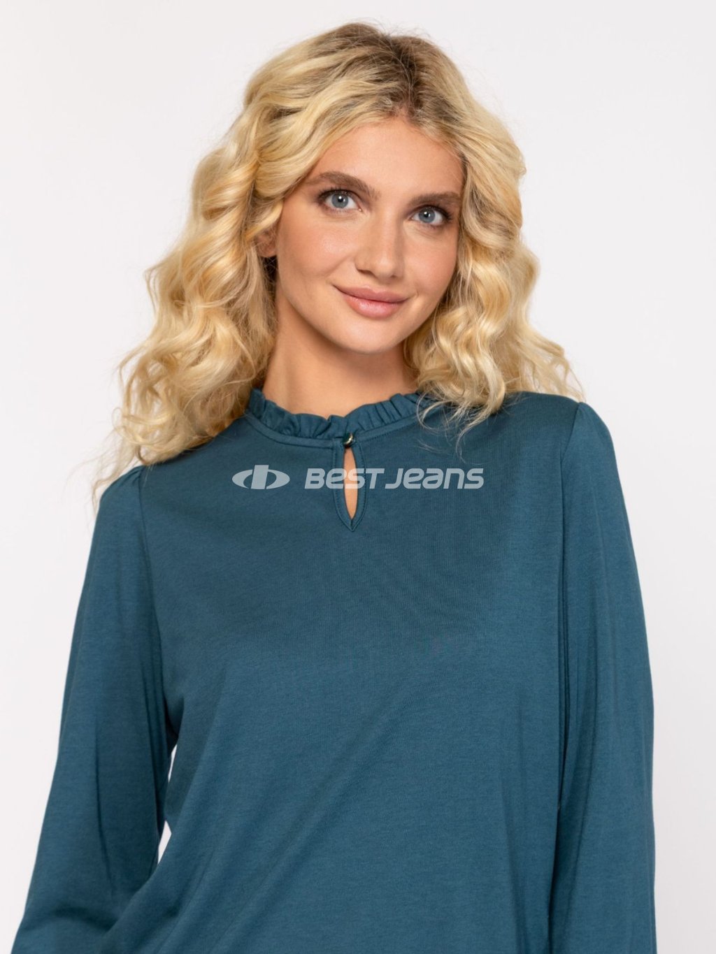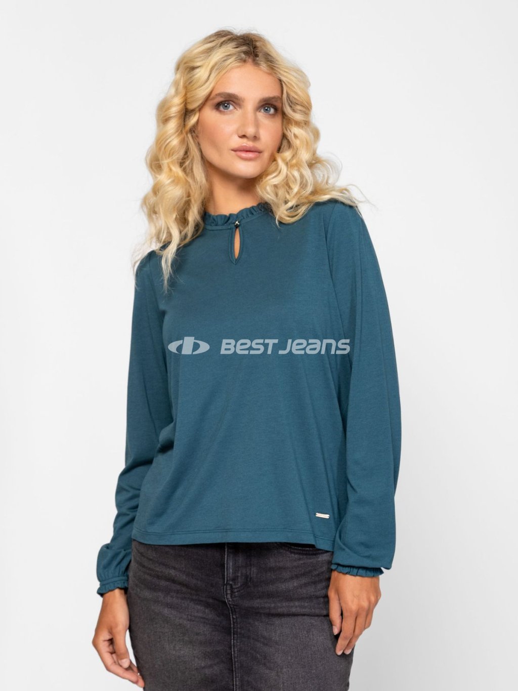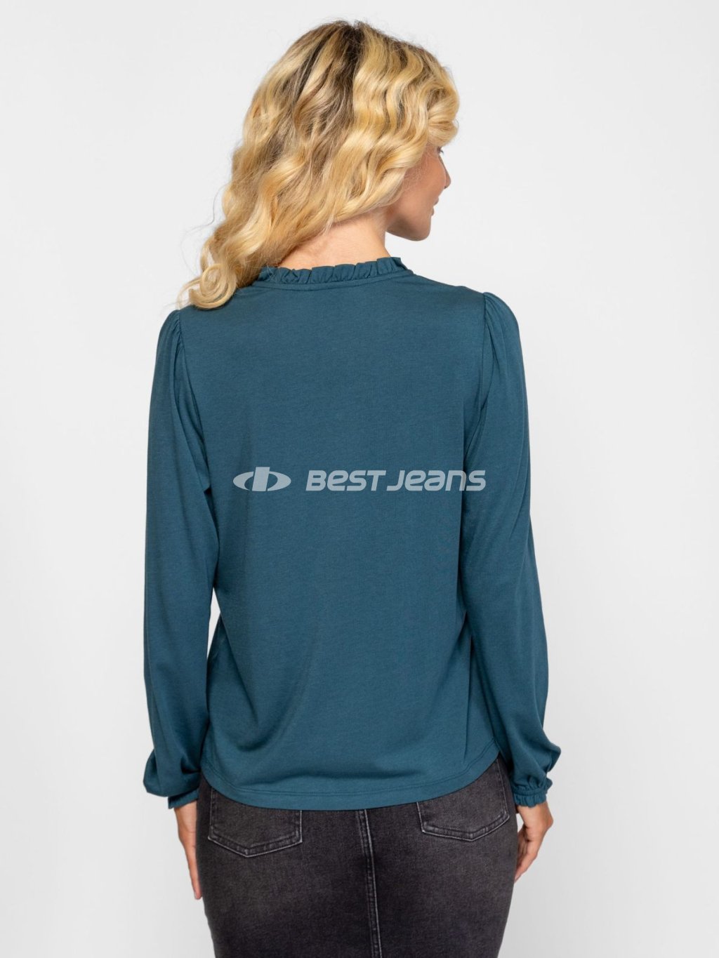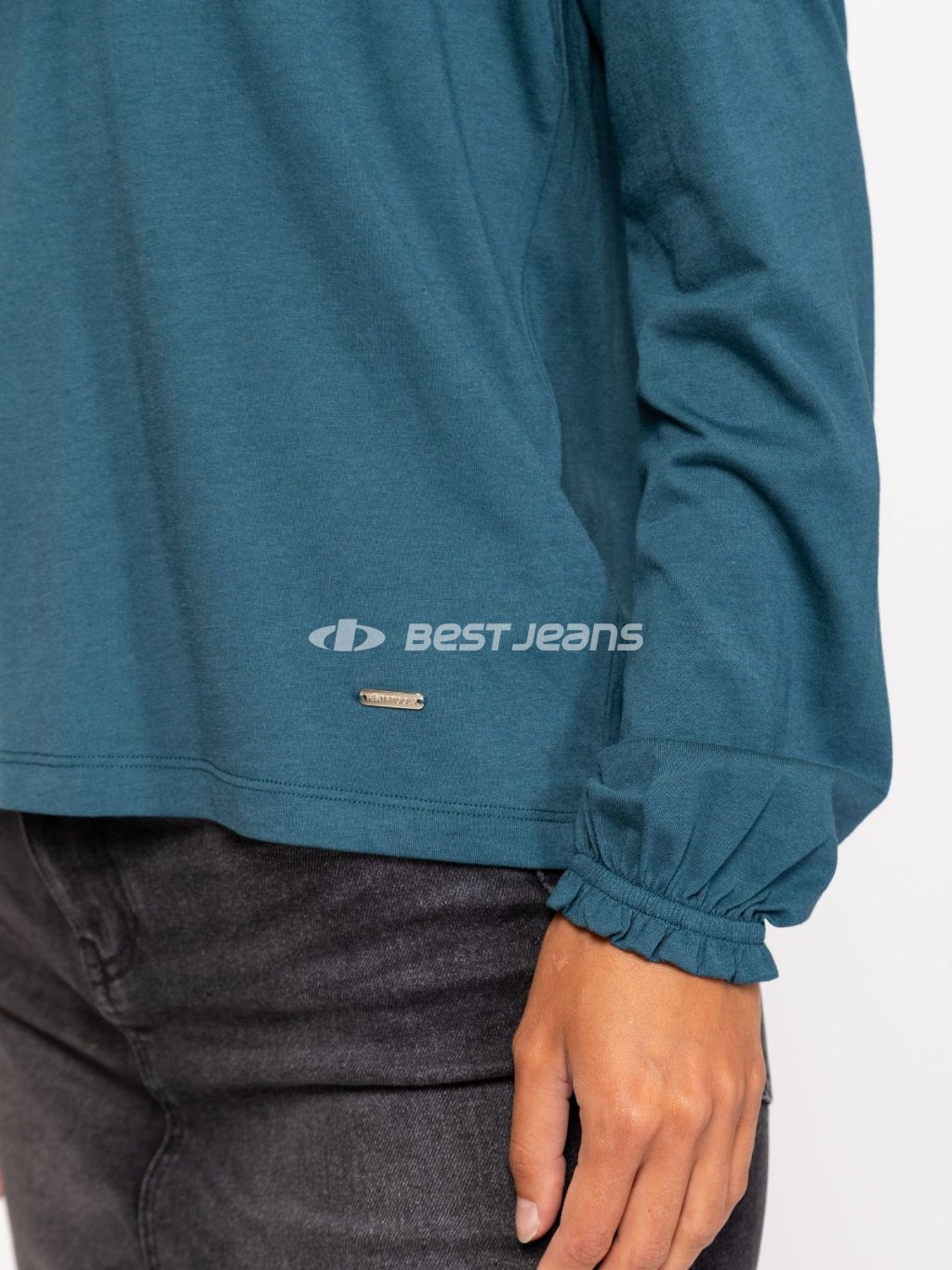 Dámská halenka/tričko Heavy Tools z lehké látky Single Jersey s dlouhými nabíranými rukávy s elastiským volánkovým zakončením a volánkovým límcem. Malé kovové logo na přední straně.
