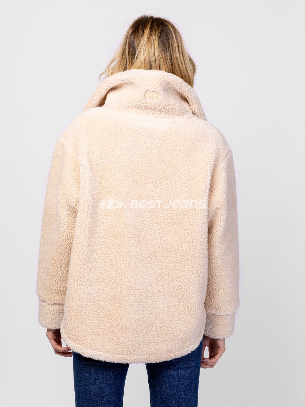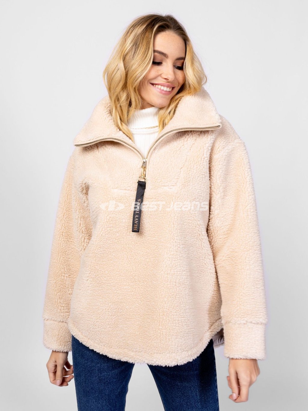 Dámský pulovr Heavy Tools se zipem a stojáčkem a spadlými rameny. Volný střih, sherpa fleece - příjemný materiál podobný vlně.