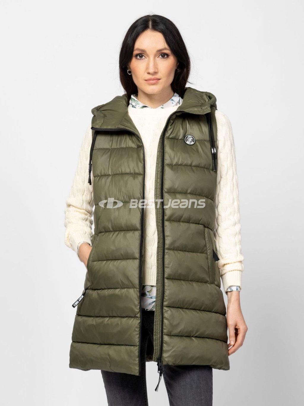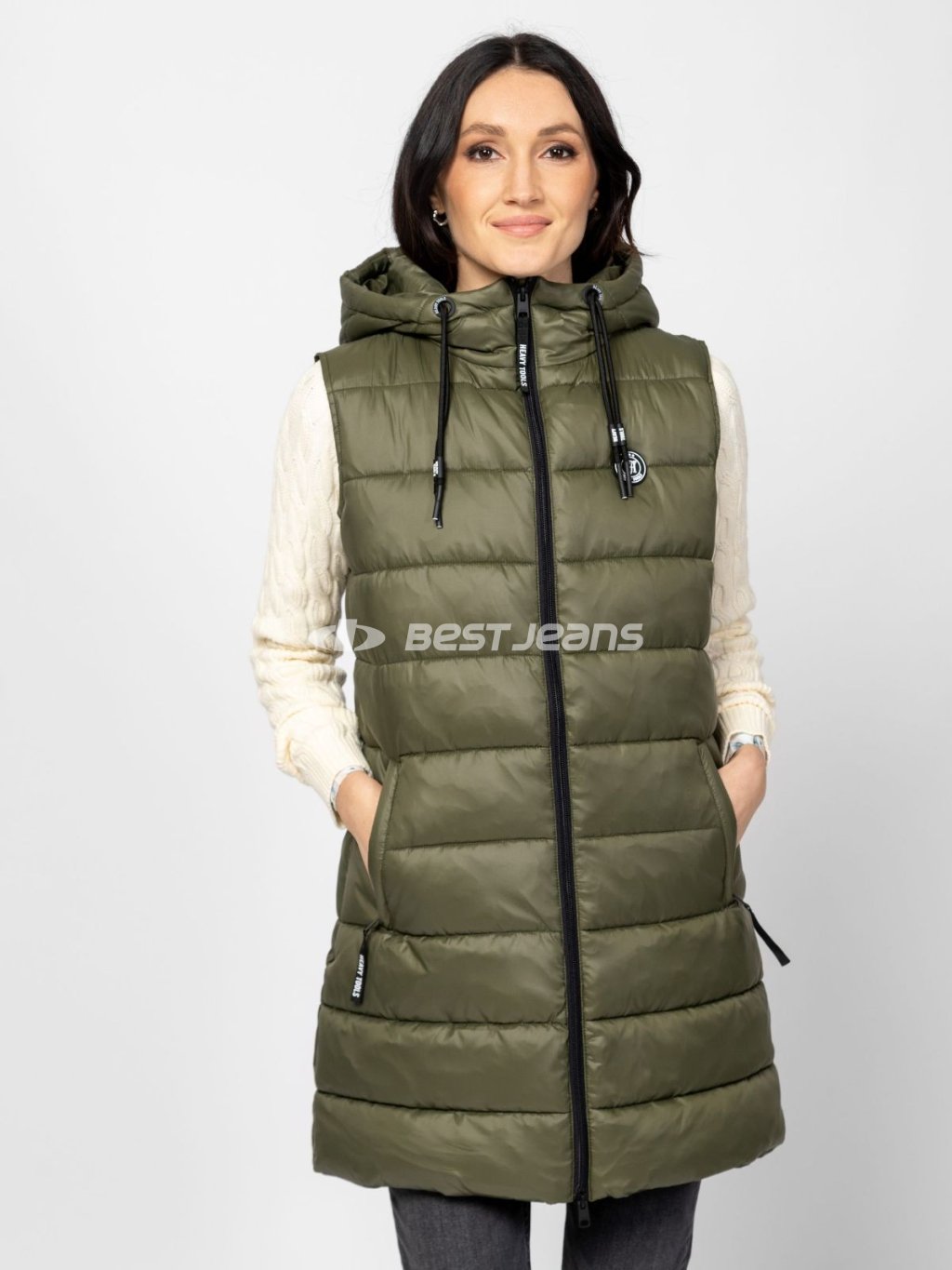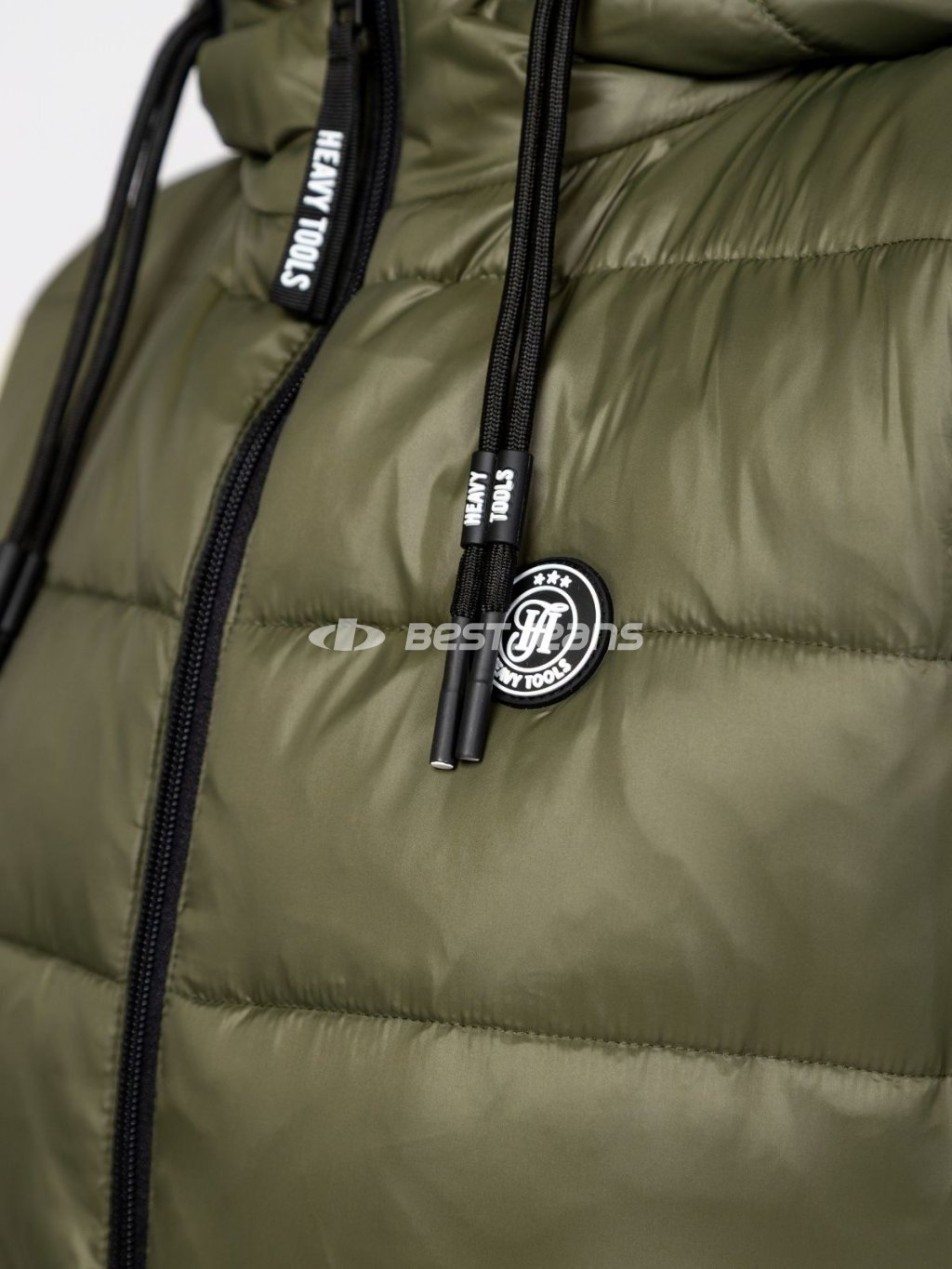 Dámská dlouhá prošívaná vesta Heavy Tools s kapucí a dvěma kapsami na zip. Mírně se rozšiřující střih, lightweight - lehká.