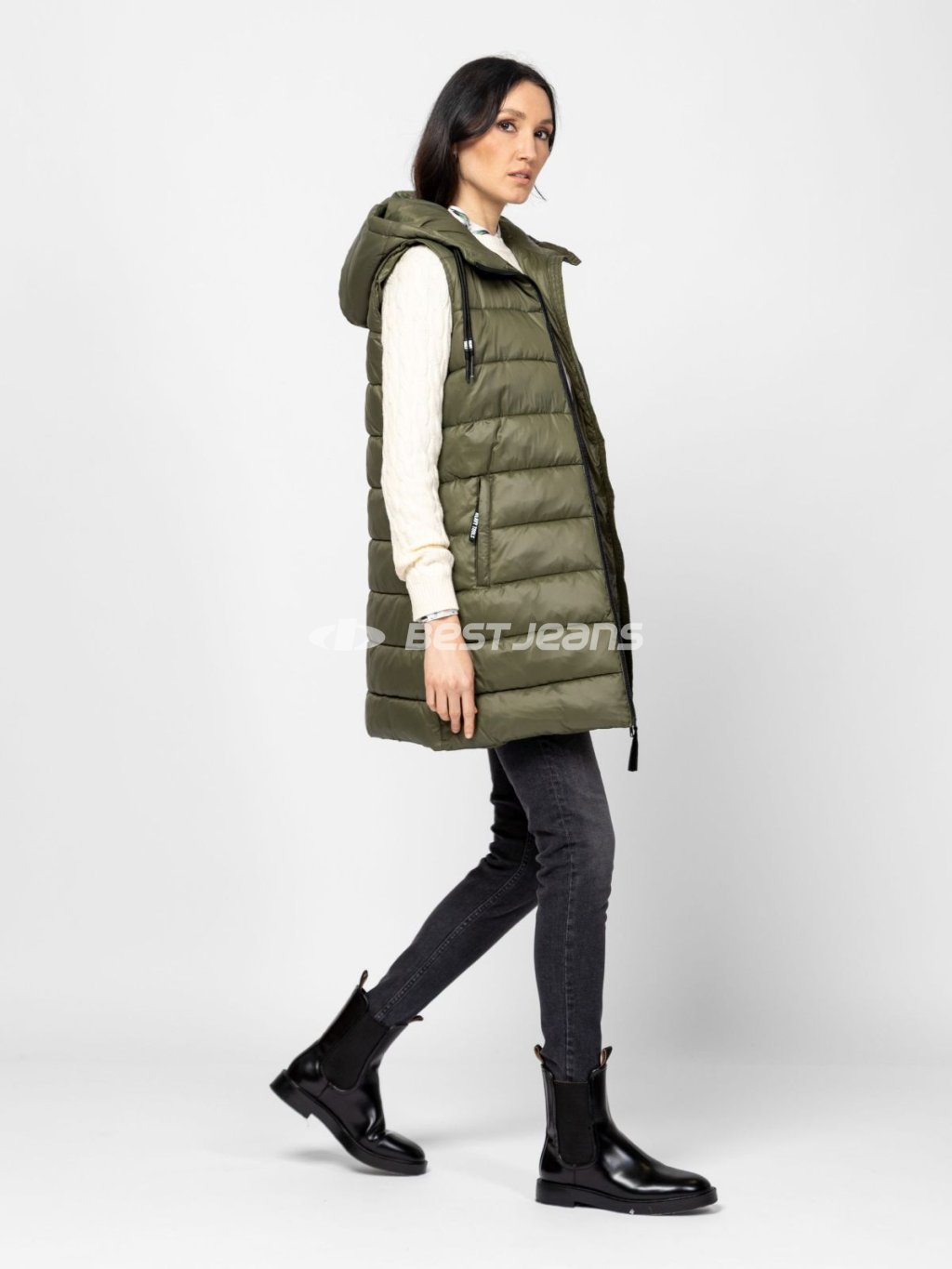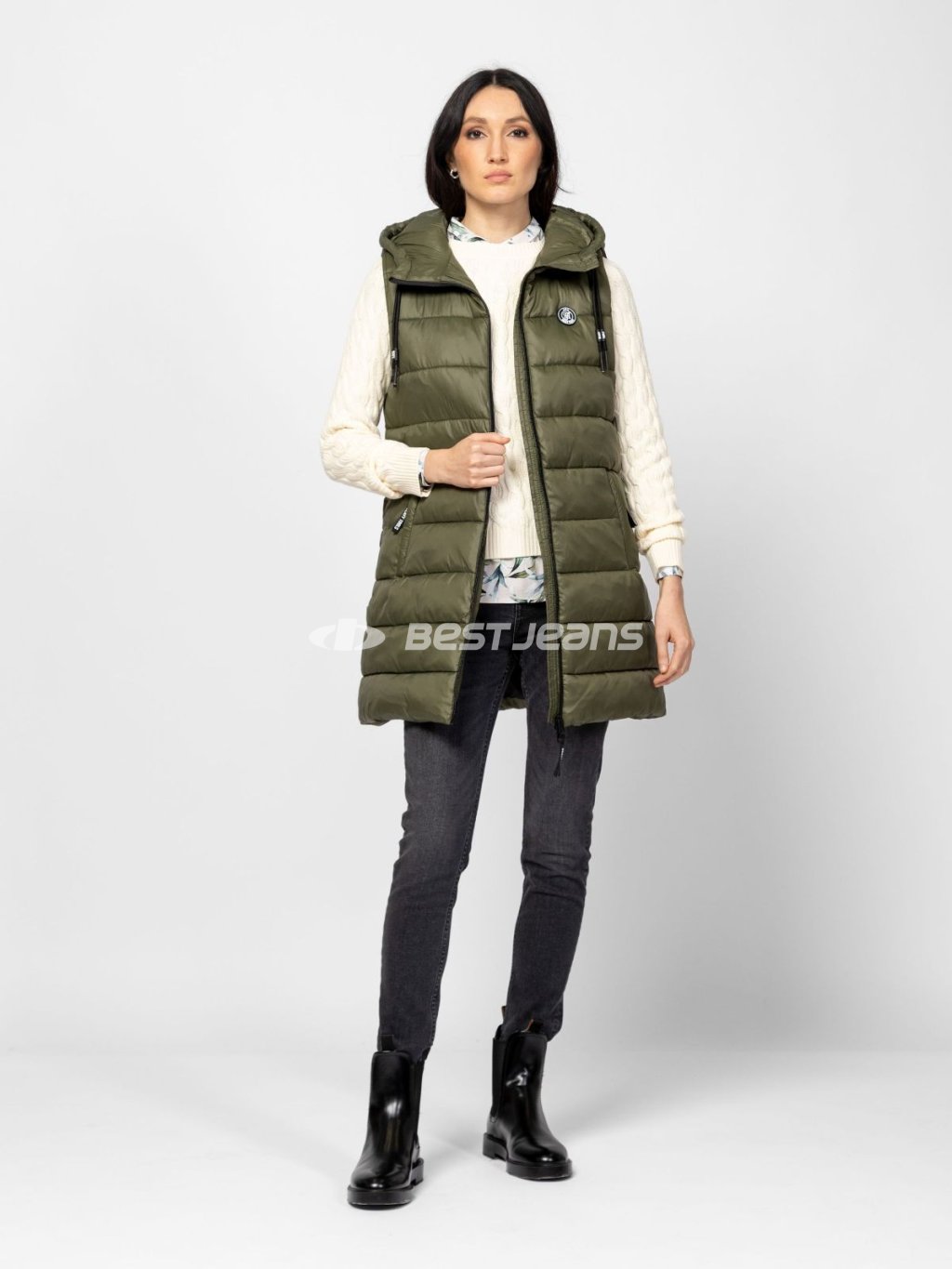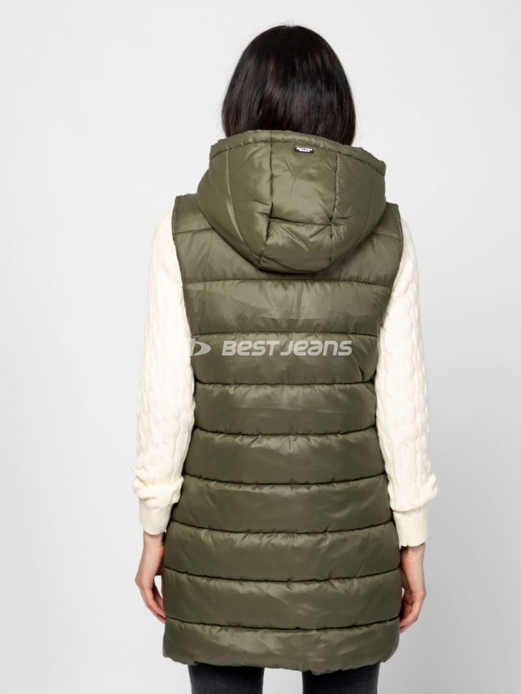 Dámská dlouhá prošívaná vesta Heavy Tools s kapucí a dvěma kapsami na zip. Mírně se rozšiřující střih, lightweight - lehká.