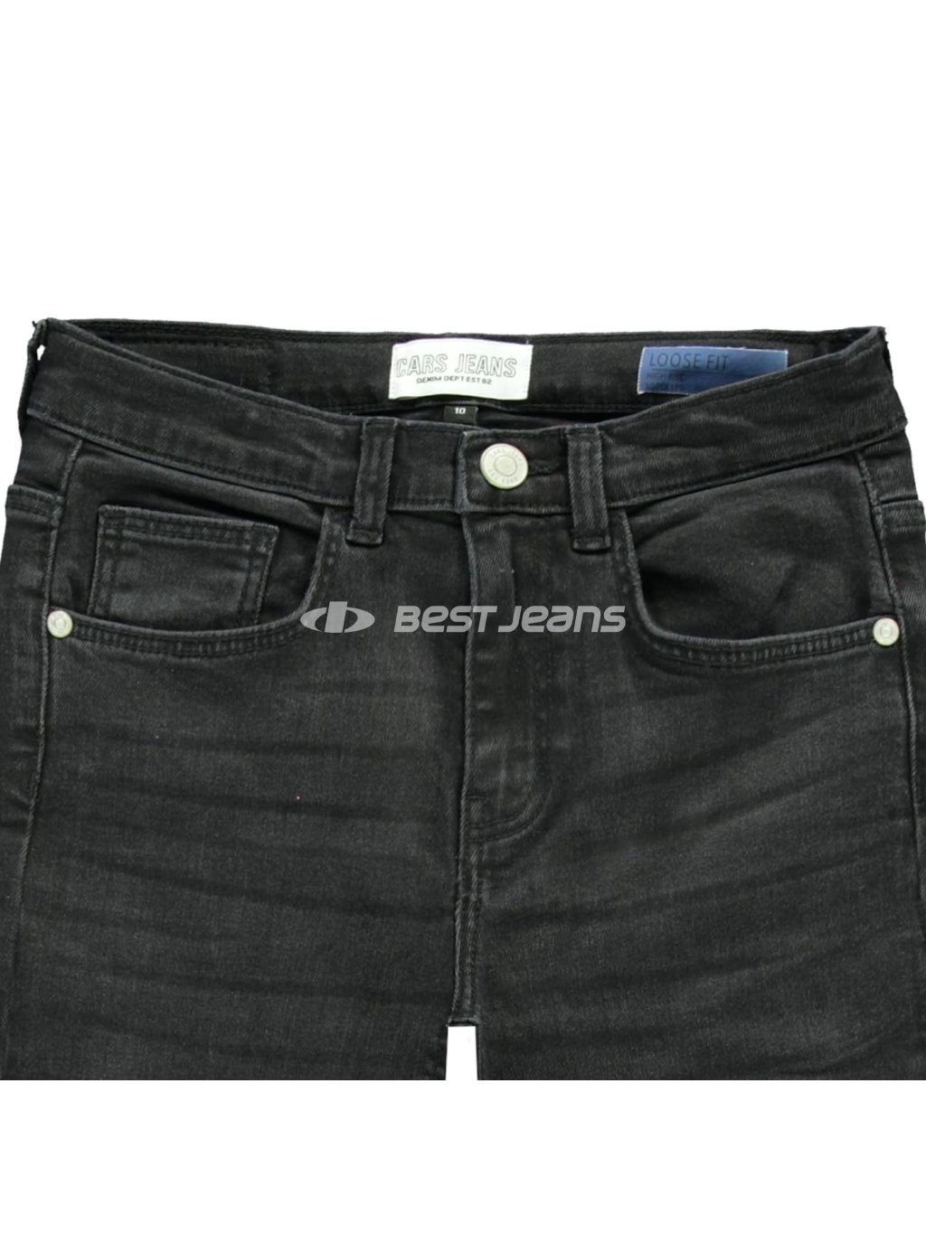 Na mosazném knoflíku je vyražen nápis CARS JEANS. Rifle jsou prošity dvojitým stehem v nekontrastním tónu a vzadu na pasu nechybí kožený štítek s logem značky. Vhodné doplnit koženým či textilním opaskem.