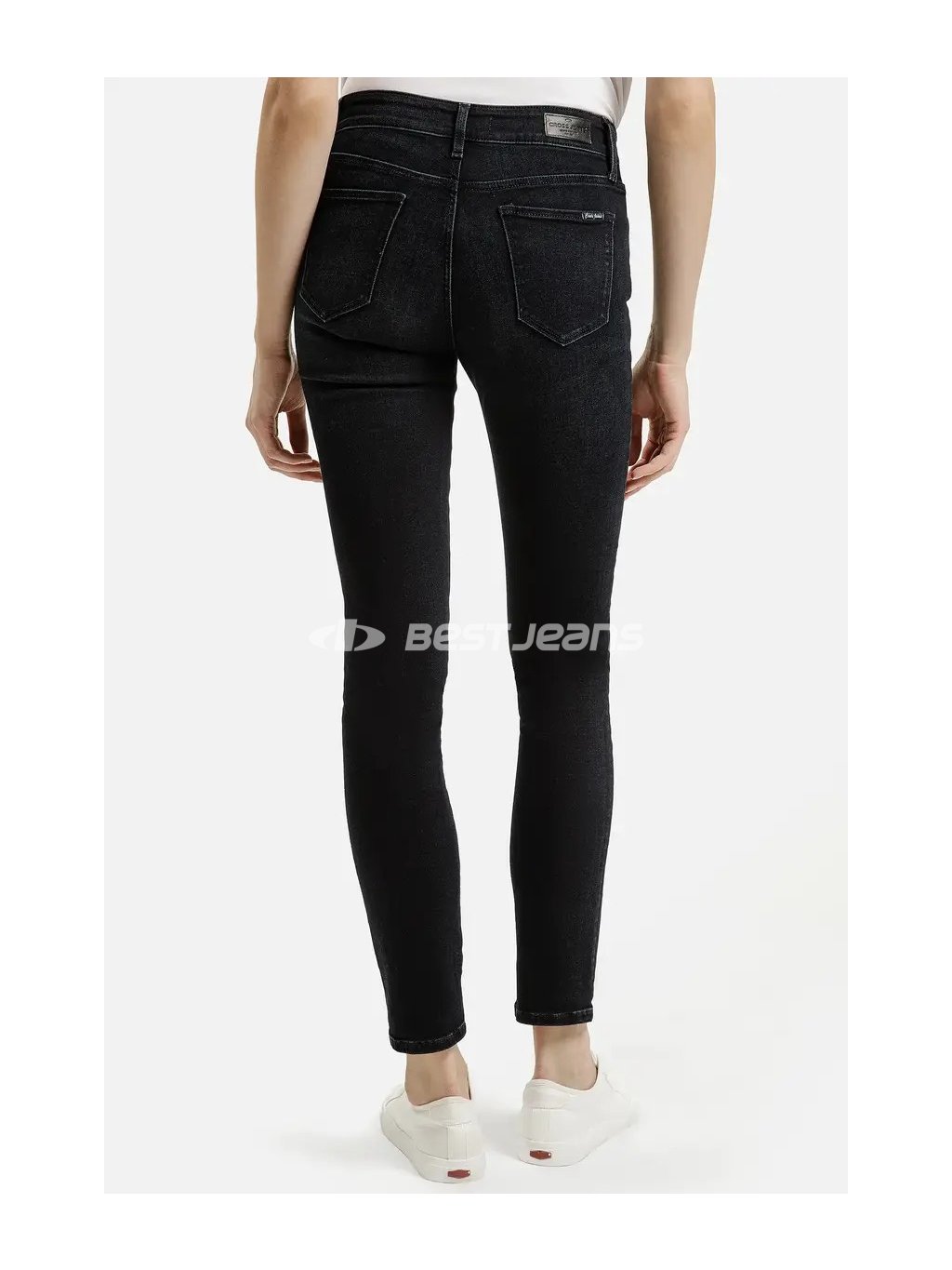 Na kovovém knoflíku bez obsahu niklu je vyražen nápis CROSS JEANS. Rifle jsou prošity dvojitým nekontrastním stehem. Vzadu nechybí kožený štítek s logem značky. Vhodné doplnit koženým opaskem.