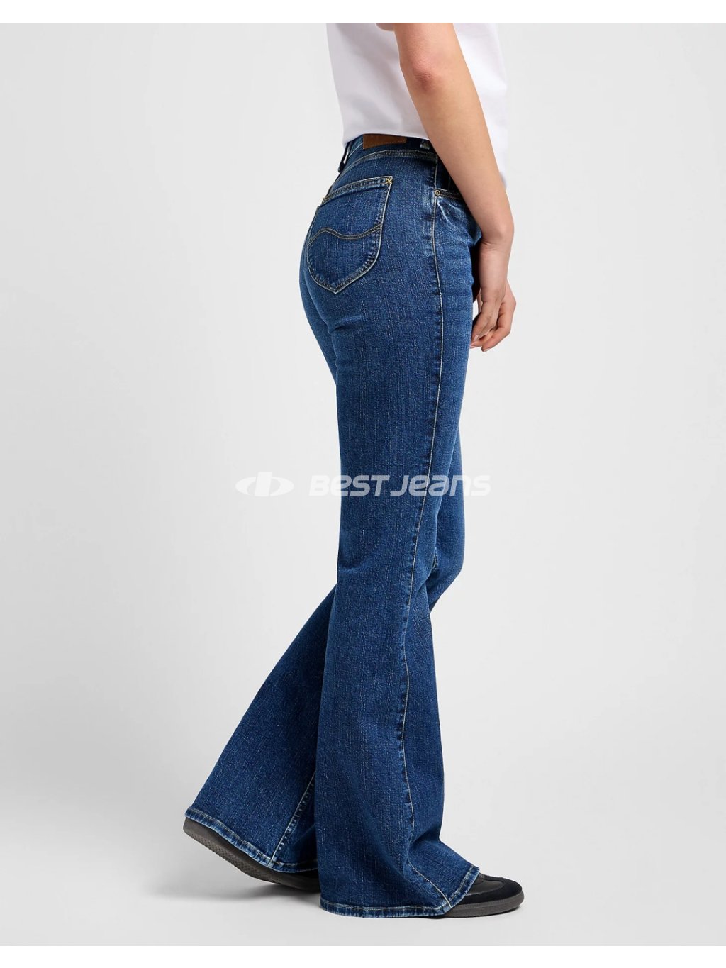 Dámské džíny Lee do zvonu v tmavém odstínu modré barvy s lehkým šoupáním. Breese je originální střih, který oživuje trend 70. let s moderním nádechem. Mají lichotivý vysoký pas a úzké nohavice od stehen ke kolenům, pod koleny se výrazně rozšiřují. Osvojte si tuto nadčasovou siluetu a noste Breese s ležérními outfity nebo je doplňte podpatky. Díky příměsi viskózy, elastomultiesteru a elastanu jsou velmi příjemné při nošení.
