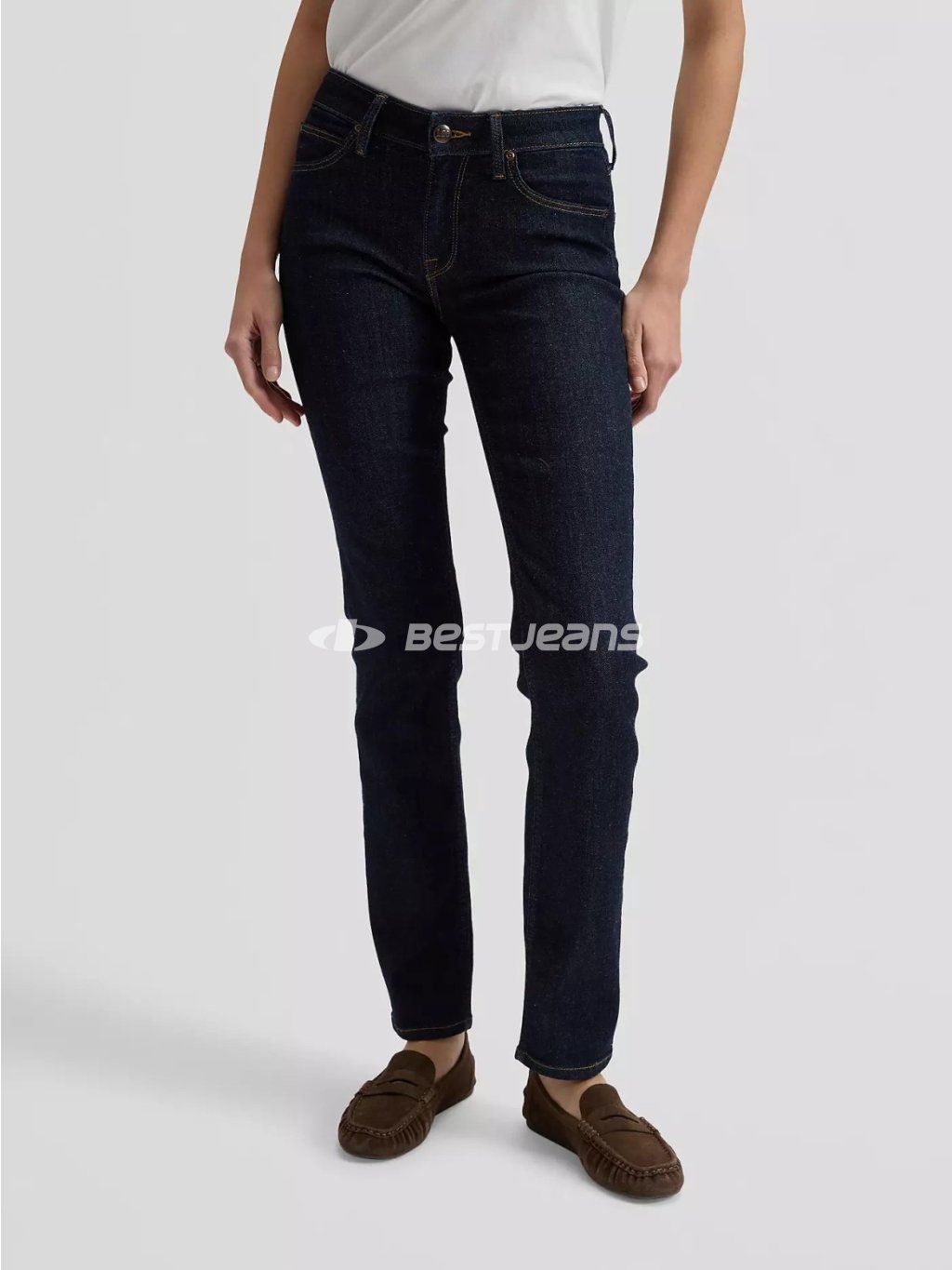 Stylové úzké dámské džíny Lee. Jsou vyrobeny z příjemného, vysoce pružného modročerného denimu o nižší gramáži. Tyto moderní jeans jsou oblíbené především díky nohavicím, které se ke kotníkům lehce zužují a mírně vyššímu pasu.