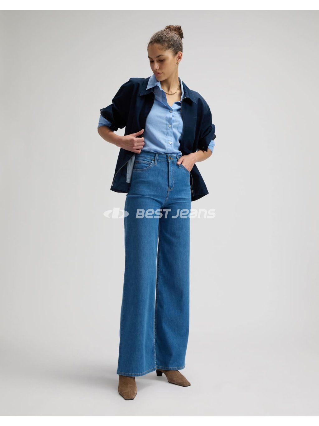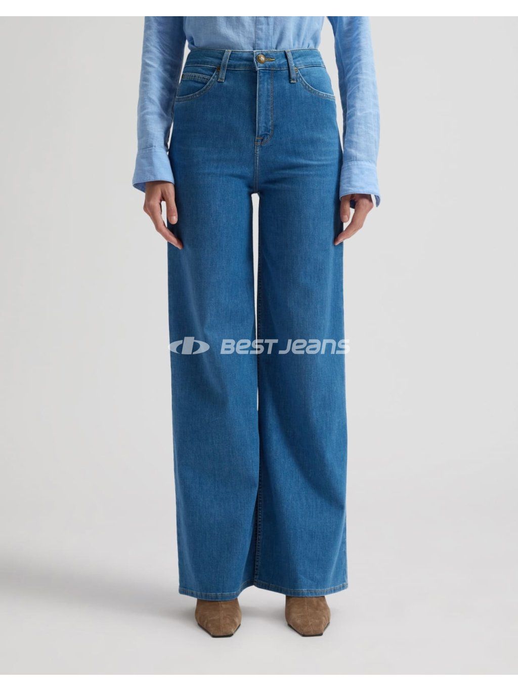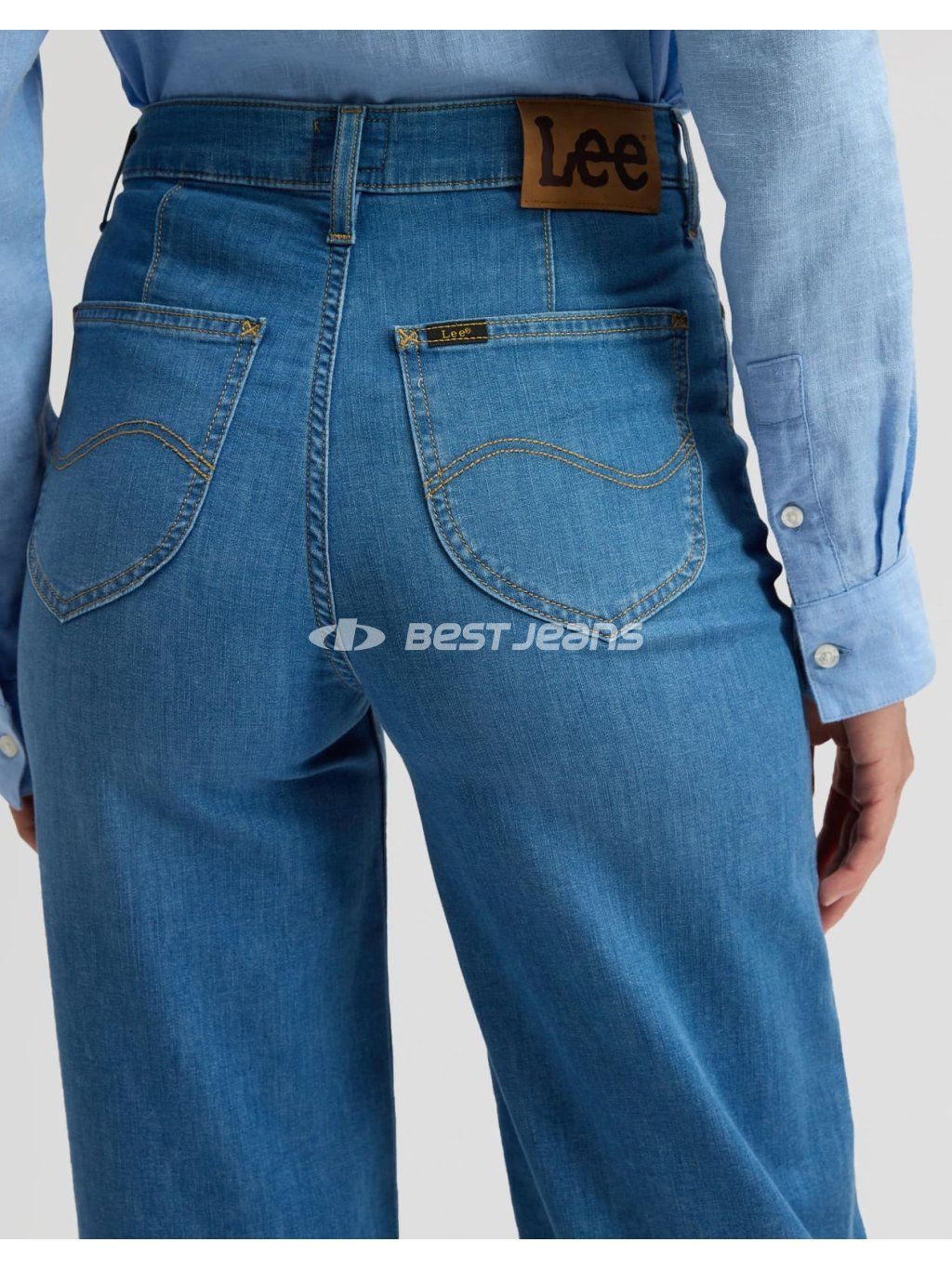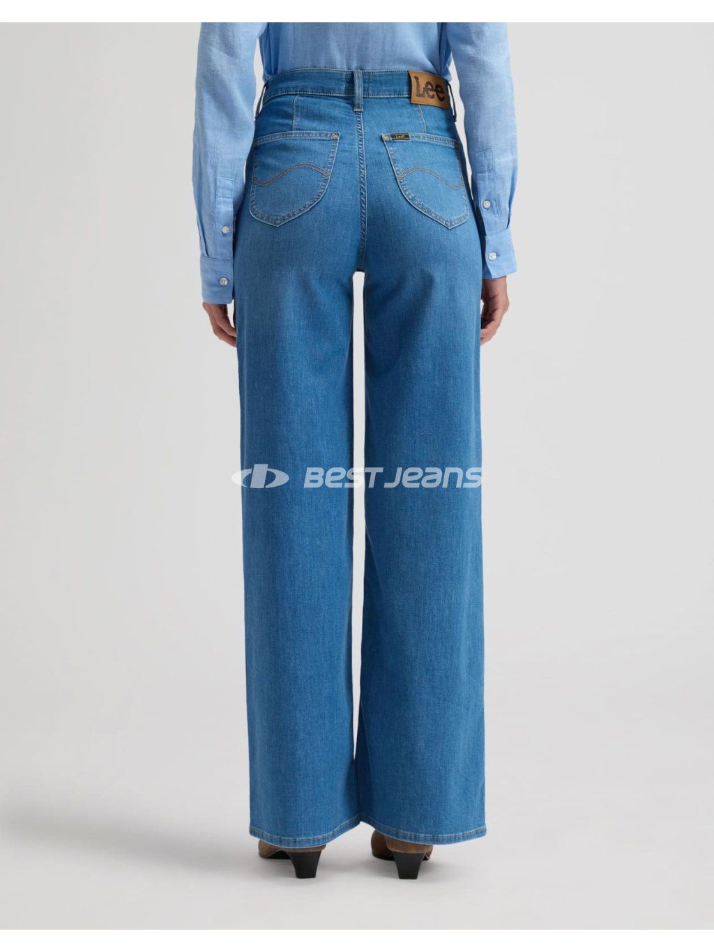 Dámské džíny Lee volného střihu ve středním odstínu modré barvy bez šoupání. Tyto stylové jeans jsou oblíbené především díky rovným, širokým nohavicím a vysokému pasu. Jsou vyrobeny z lehkého denimu s příměsí elastomultiesteru a elastanu, díky čemuž jsou kalhoty velmi pohodlné při nošení.