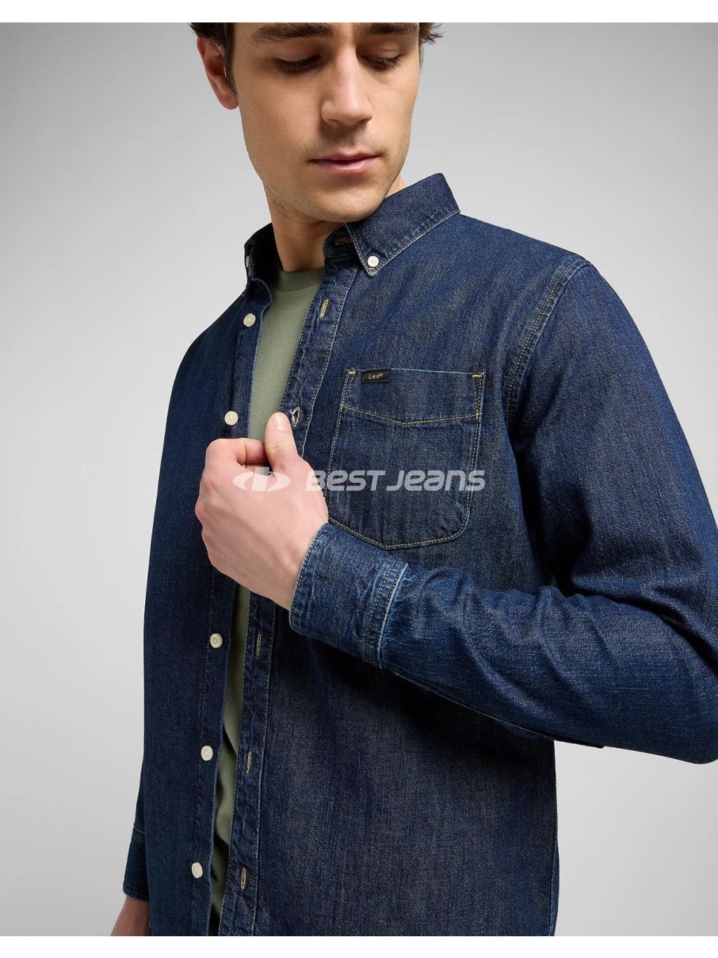 Pánská džínová košile Lee volného střihu s kapsičkou a zapínáním na knoflíky. Z příjemného modročerného denimu - lightweight.