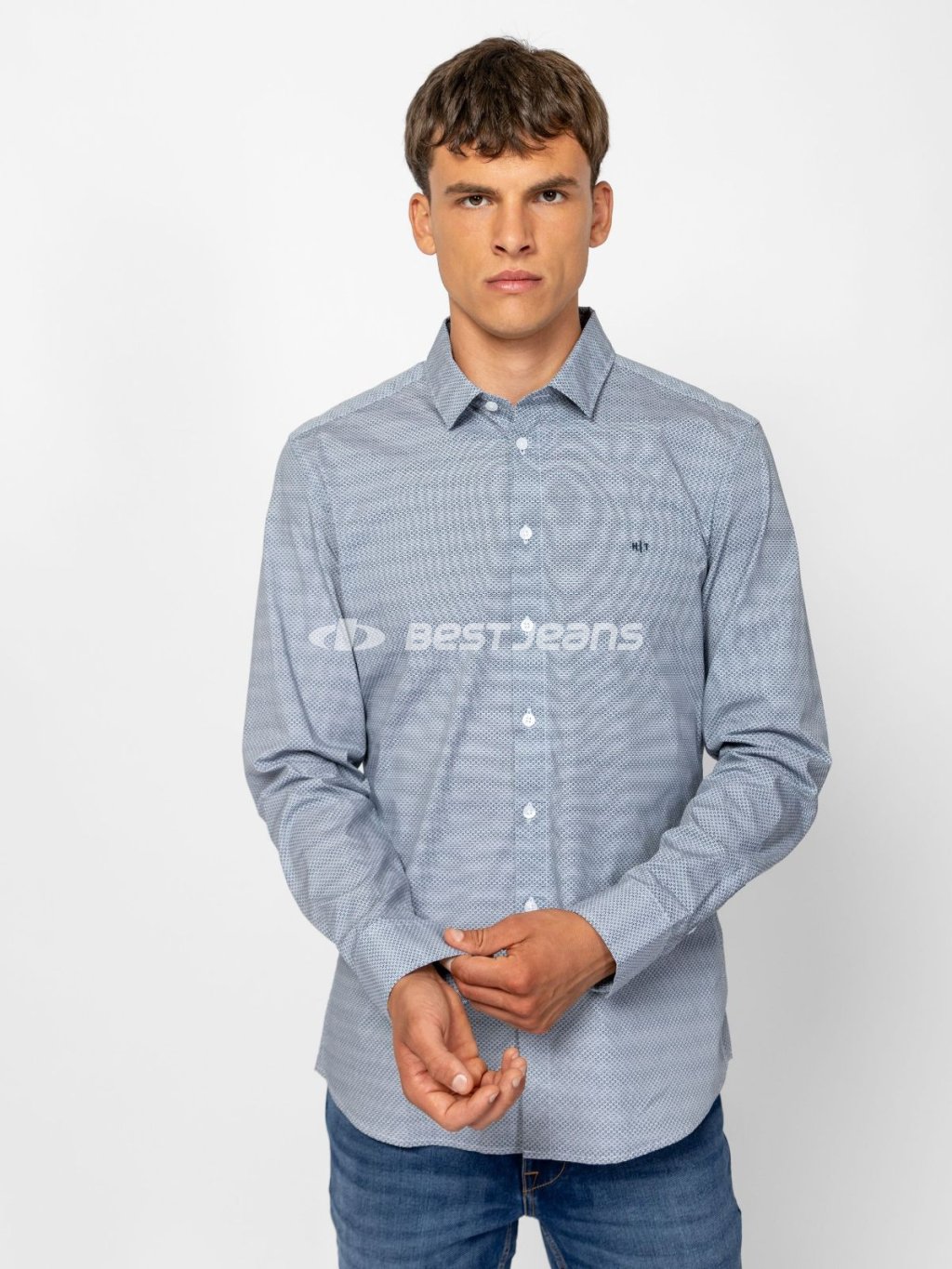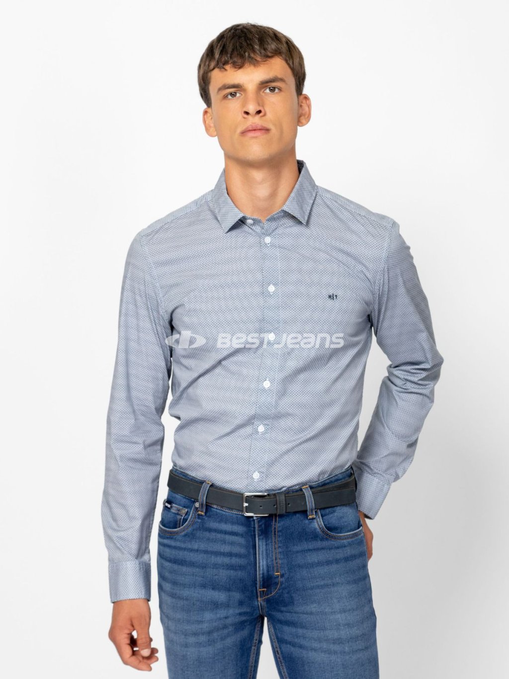 Pánská košile Heavy Tools s dlouhým rukávem, drobným vzorem a malým vyšitým logem vpředu. Elastická bavlněná látka popelín poskytuje pohodlný pocit i při celodenním nošení.