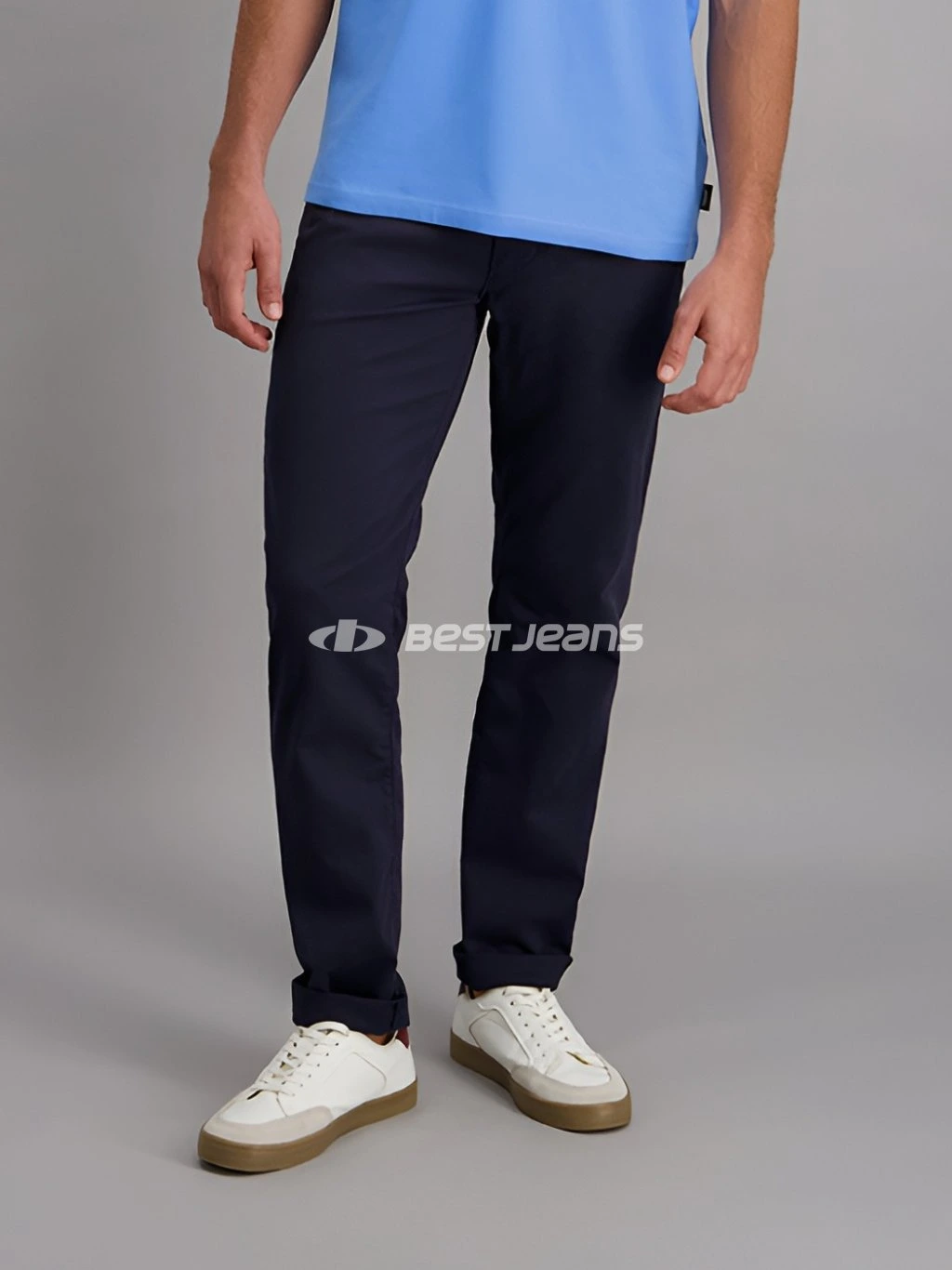 Elegantní lehké pánské kalhoty klasického střihu ERIC s rovnými nohavicemi a středním sedem, přičemž přední pozice je nižší než zadní. Jsou vyrobeny z příjemné tmavě modré látky, prošity nití v modrém tónu včetně originálního ozdobného prošití zadních kapes a mají mosazný knoflík s logem značky. Díky příměsi elastanu jsou pružné a pohodlné. Vzadu na pasu nechybí kožená nášivka PIONEER AUTHENTIC JEANS.