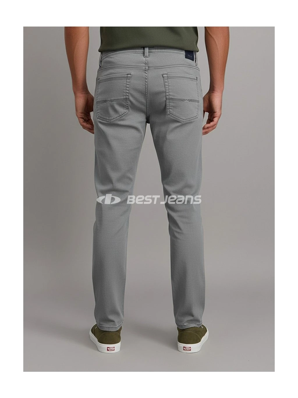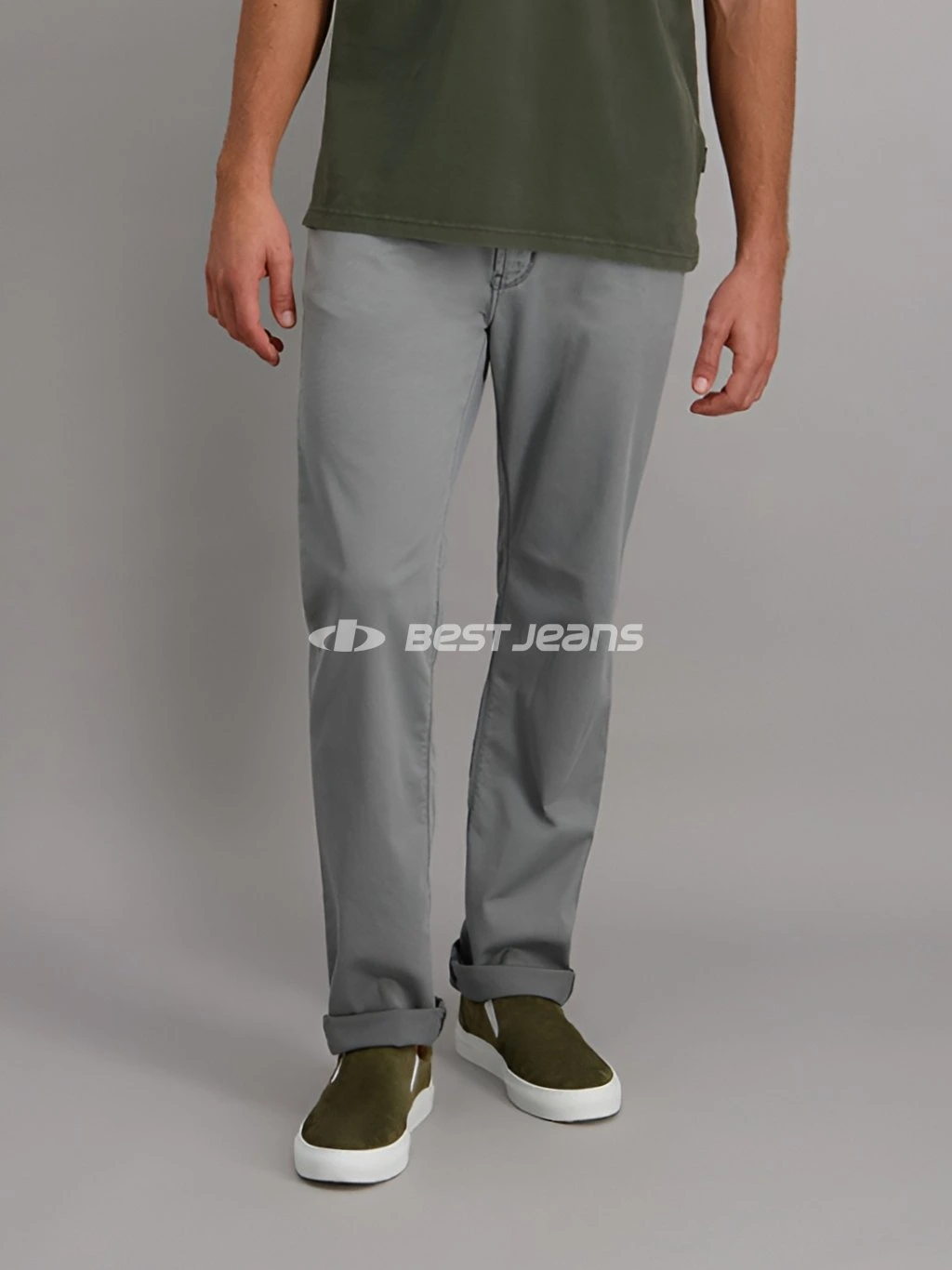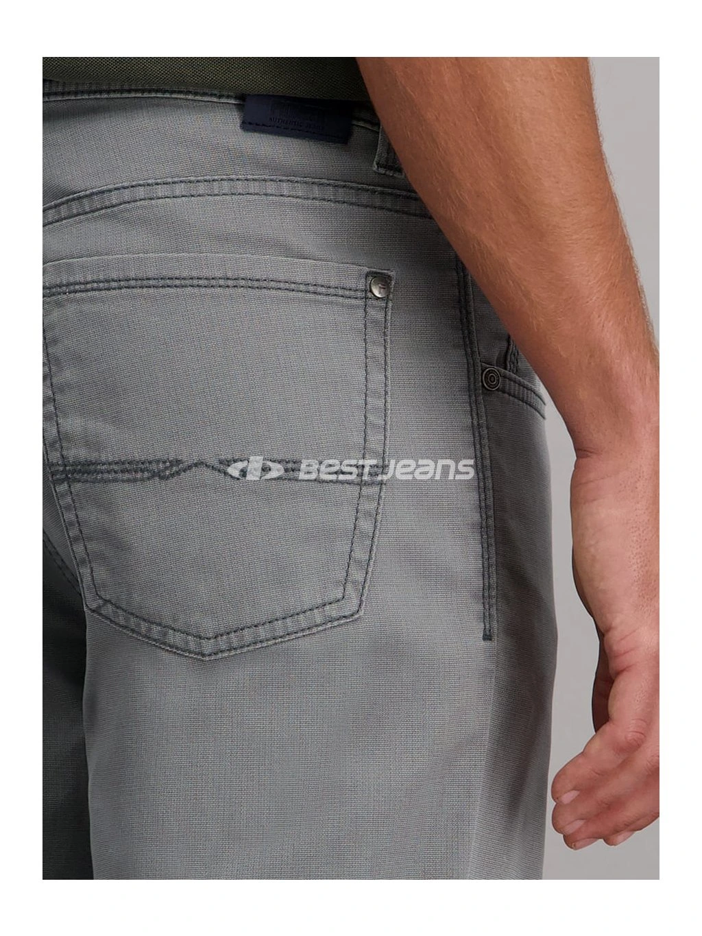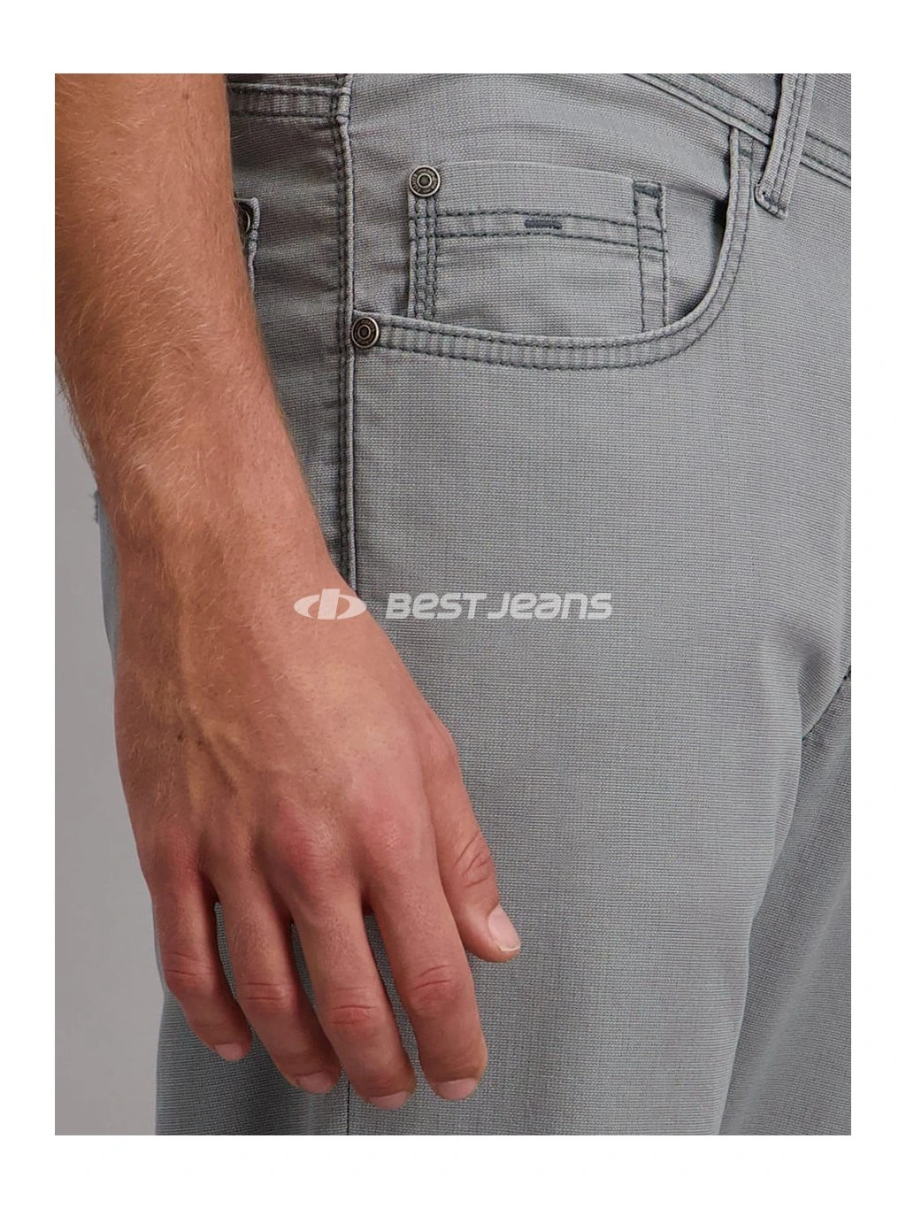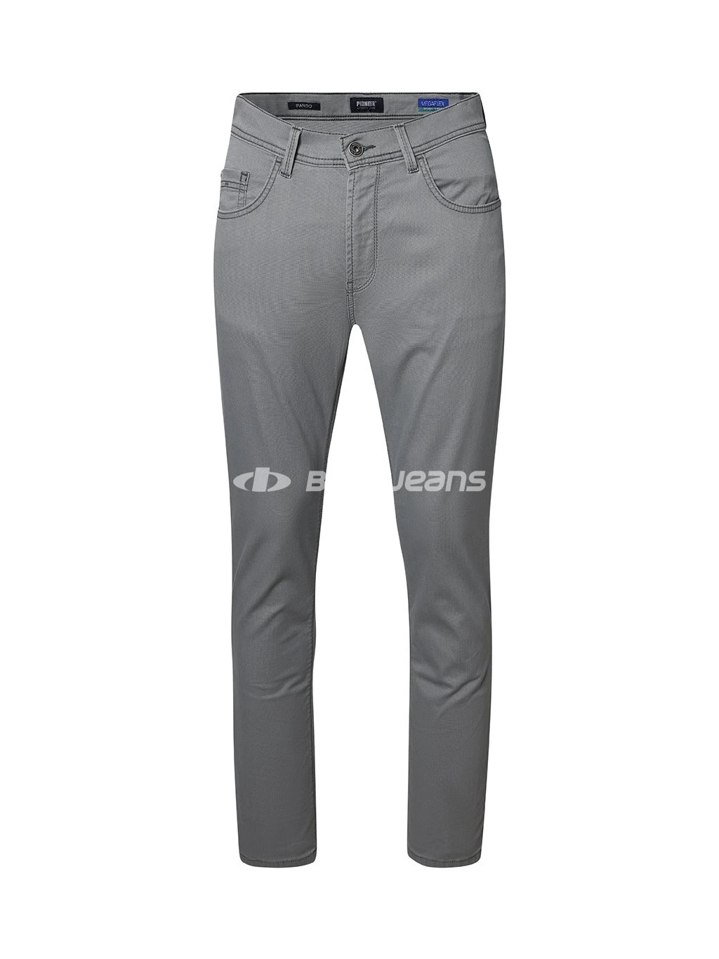 Elegantní lehké pánské kalhoty klasického střihu RANDO se středním, vzadu mírně vyšším sedem a rovnými nohavicemi. Díky použitému materiálu MEGAFLEX s příměsí elastanu jsou pružné a pohodlné při nošení. Jsou vyrobeny z velmi příjemné světle šedé látky a prošity nití v šedém tónu včetně originálního ozdobného prošití zadních kapes. Vzadu na pasu nechybí kožená nášivka PIONEER AUTHENTIC JEANS.