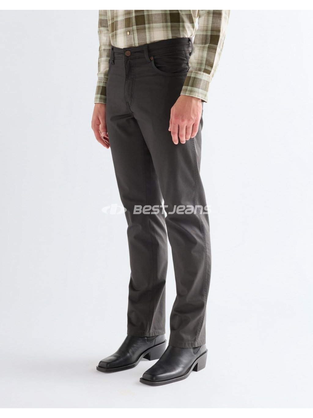 Elegantní lehké pěti kapsové kalhoty střihu TEXAS, který je charakteristický středním až mírně vyšším sedem a volnějšími, mírně se zužujícími nohavicemi. Kalhoty jsou vyrobeny z materiálu o nízké gramáži. Jsou prošity pevnou nití v černém tónu a mají mosazné nýty a knoflík. Na zadních kapsách jeans je typické originální „W“ vyšívání, na pravé zadní kapse také kožená nášivka s logem Wrangler. Výborně se hodí do práce, na víkendy a na nejrůznější příležitosti.