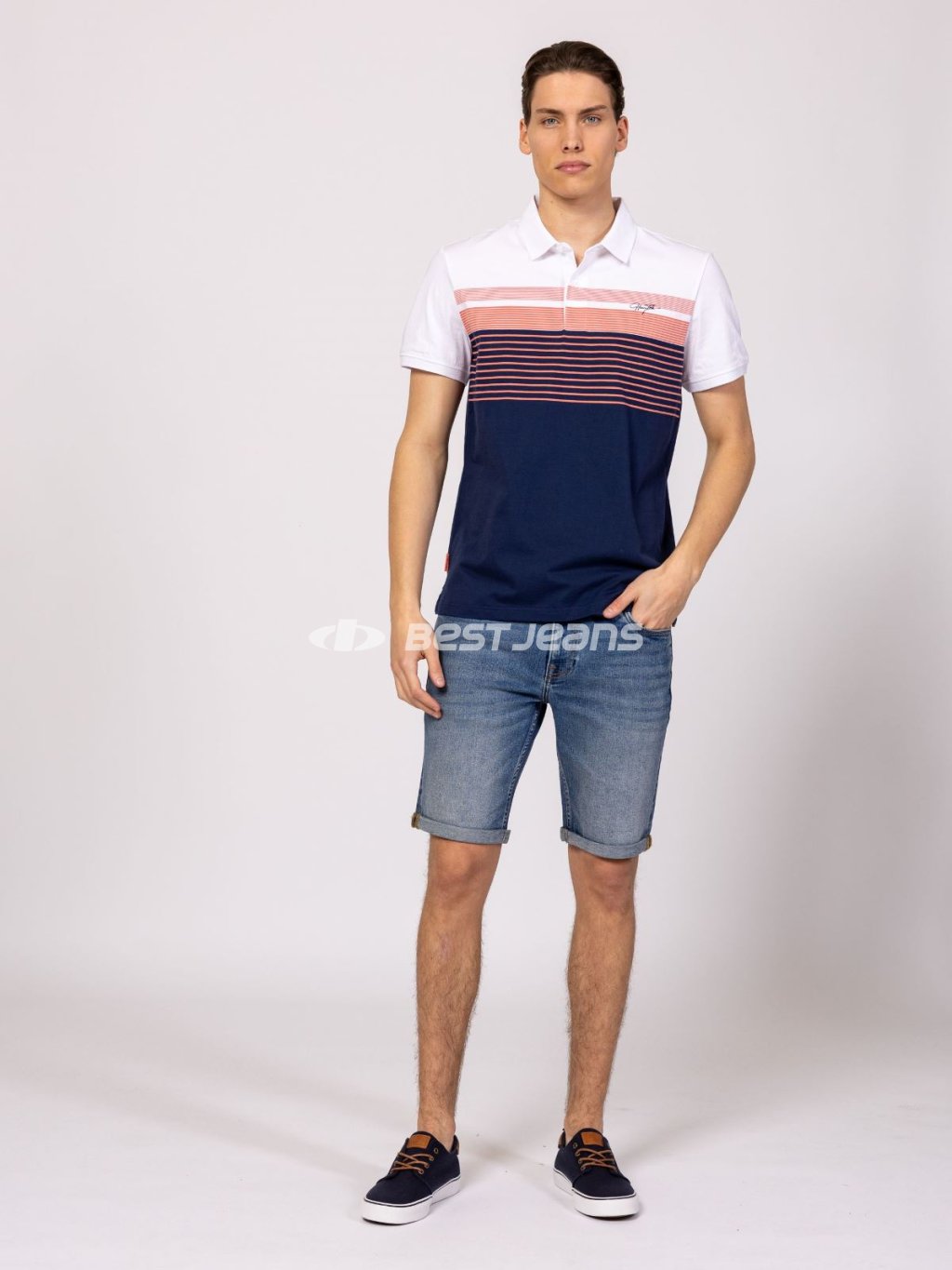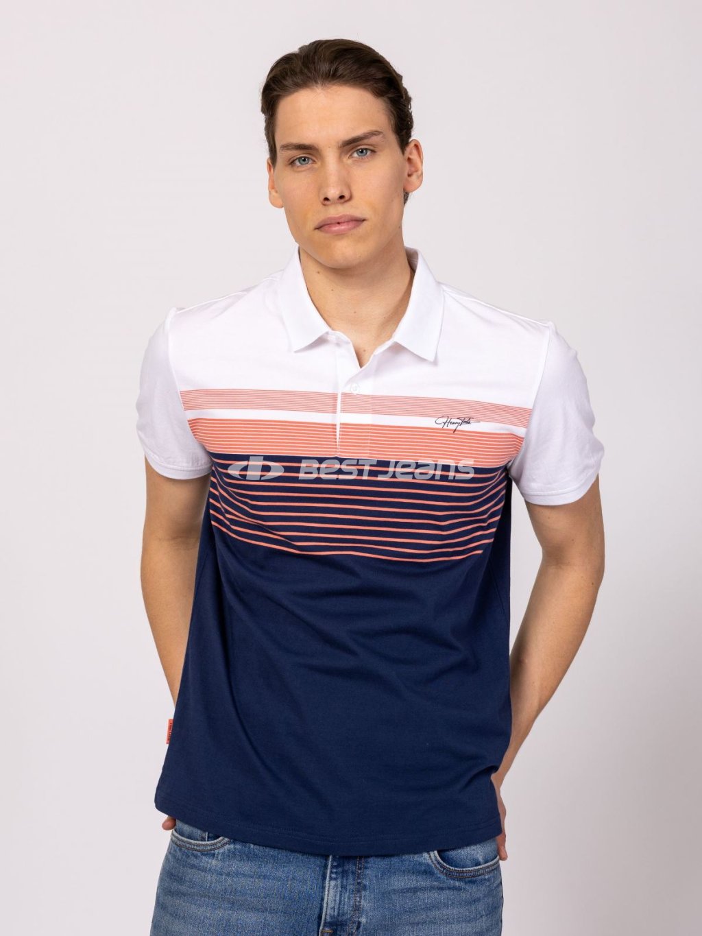 Pánská polokošile Heavy Tools s krátkými rukávy, rovného střihu s rozparky na bocích u spodního okraje. Potisk proužky přes hrudník, látka Single Jersey. Dobrá kombinace barev, která opticky rozšiřuje horní partie a naopak zužuje partie břicha.