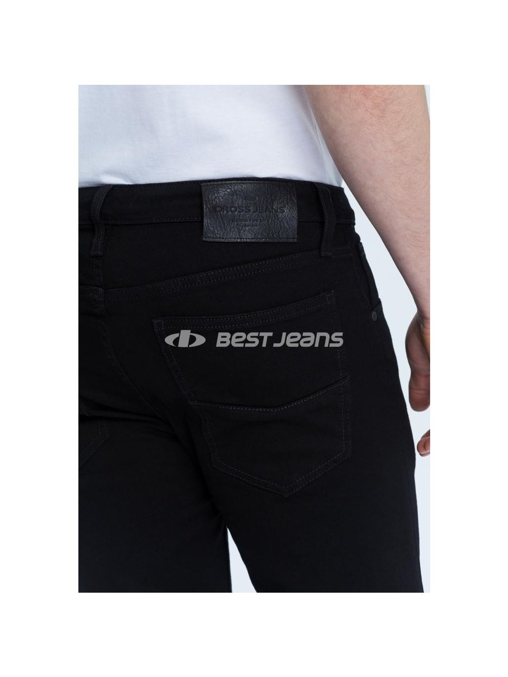 Na kovovém knoflíku bez obsahu niklu je vyražen nápis CROSS JEANS. Rifle jsou prošity dvojitým stehem v černém tónu včetně originálního ozdobného prošití zadních kapes. Vzadu nechybí kožený štítek s logem značky. Vhodné doplnit koženým opaskem.