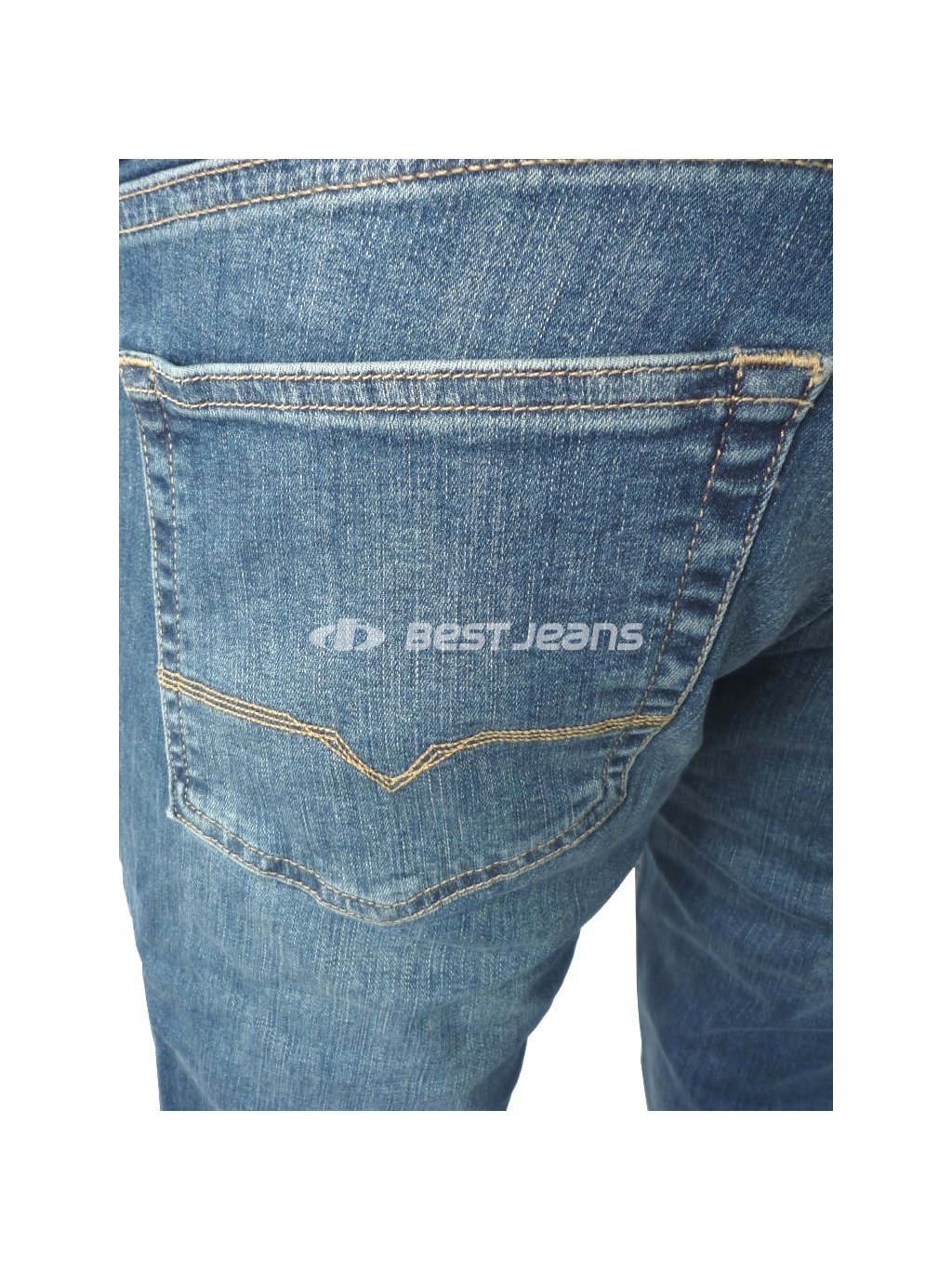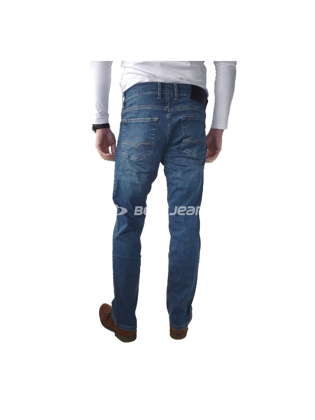 Klasické pánské pěti kapsové džíny Vigoss se středně vysokým sedem a rovnými nohavicemi. Rifle jsou vyrobeny z příjemného světle modrého denimu a mají lehké šoupání. Díky příměsi elastanu jsou pohodlné při nošení. Džínsy jsou prošity dvojitým světle hnědým stehem včetně originálního ozdobného prošití zadních kapes a mají mosazné nýty a knoflík s vyraženým nápisem VIGOSS. Vzadu na pasu nechybí kožená nášivka s logem značky. Vhodné doplnit koženým opaskem.