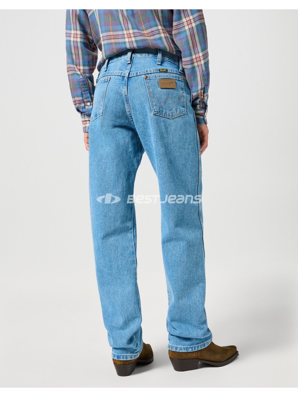 Klasické džíny se středně vysokým sedem a rovnými nohavicemi určené pro muže, kteří preferují tradiční materiál bez streče. Kalhoty jsou vyrobeny ze silnějšího světle modrého denimu o vyšší gramáži. Jsou prošity světle žlutou nití a mají mosazné nýty a knoflík. Na zadních kapsách jeans je typické originální „W“ vyšívání, na pravé zadní kapse také kožená nášivka s logem Wrangler.