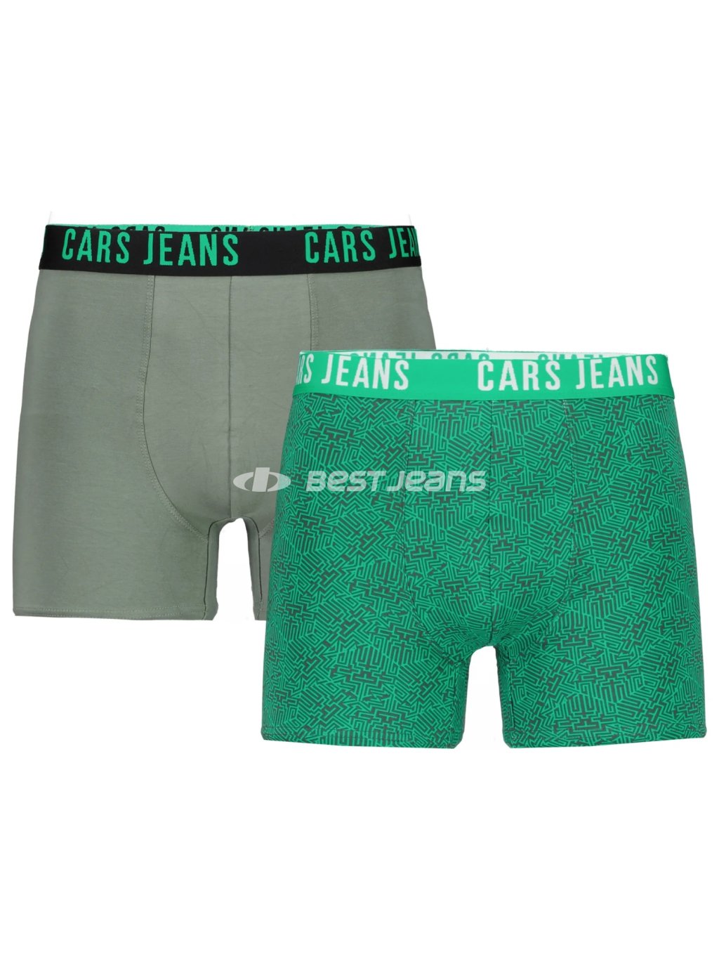 Pánské boxerky zelené barvy z velmi příjemné bavlny s příměsí elastanu. Pružný pas s logem CARS JEANS. 2 kusy v balení (z toho 1 s potiskem).