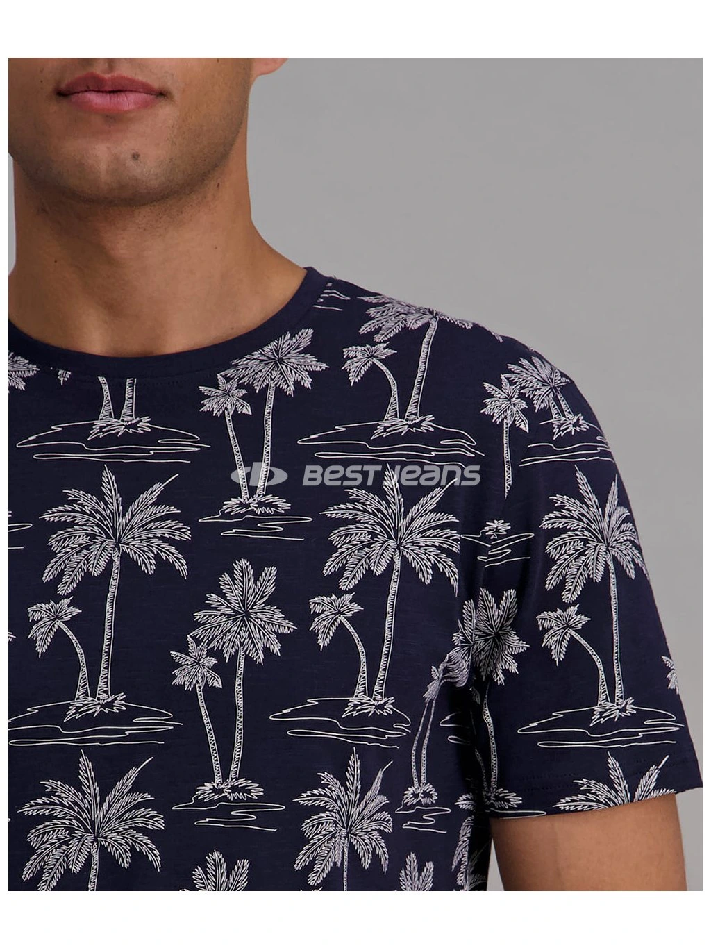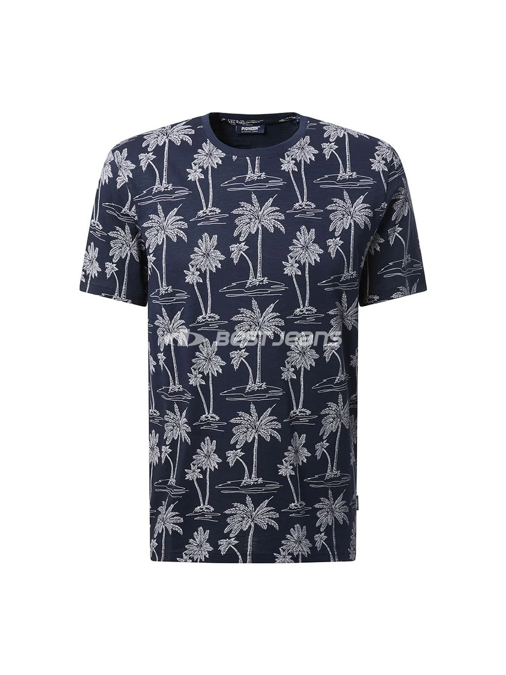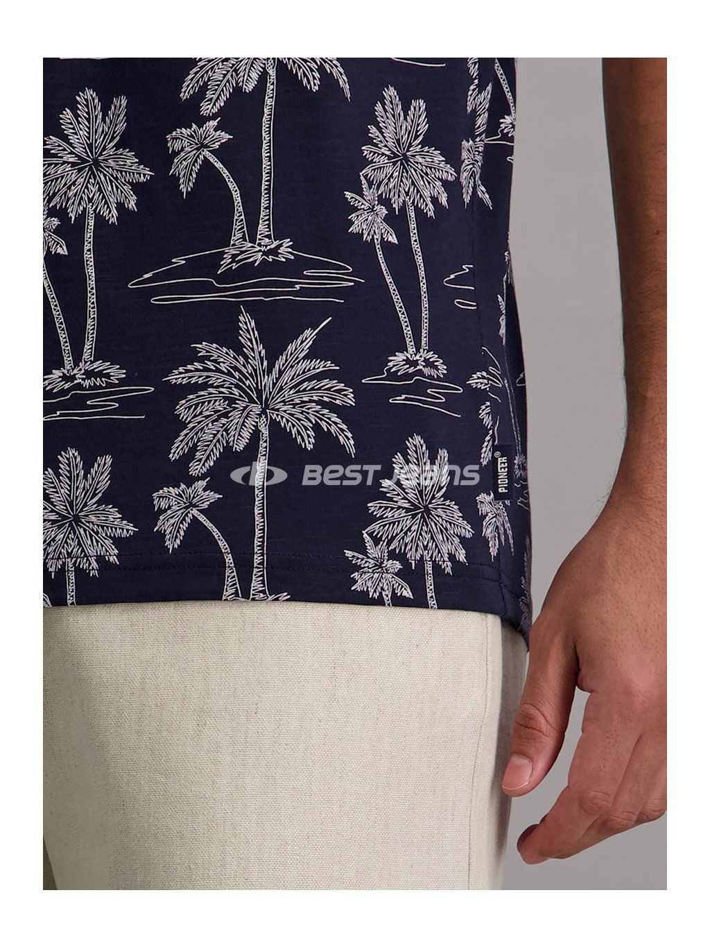 Pánské tričko Pioneer s krátkými rukávy a kulatým výstřihem. Celoplošný potisk palmy v kombinaci s temně modrou barvou dodává triku elegantní styl s tropickým nádechem. Na levém boku malá nášivka s logem PIONEER. Velmi příjemný materiál ve střední gramáži, ideální pro teplé dny.