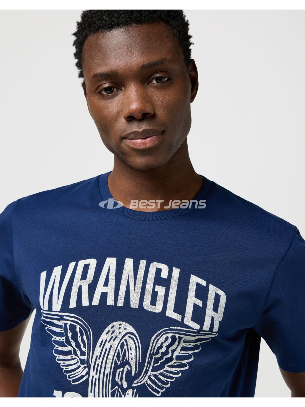 Pánské tričko Wrangler s krátkým rukávem s velkým potiskem. Z nekrčivé látky Heavy Jersey o vyšší gramáži.