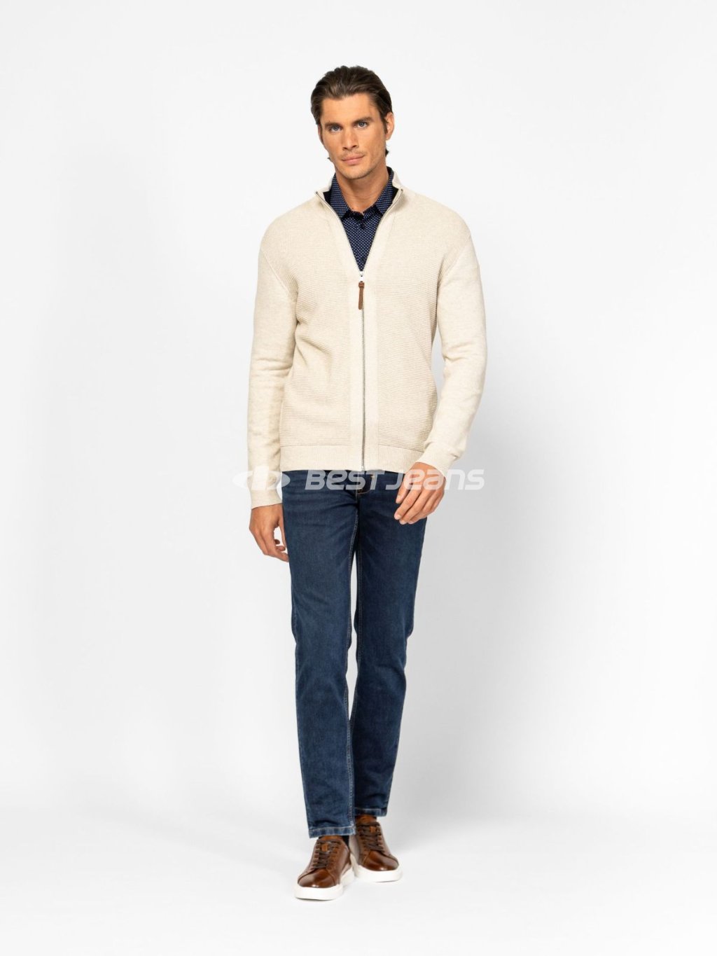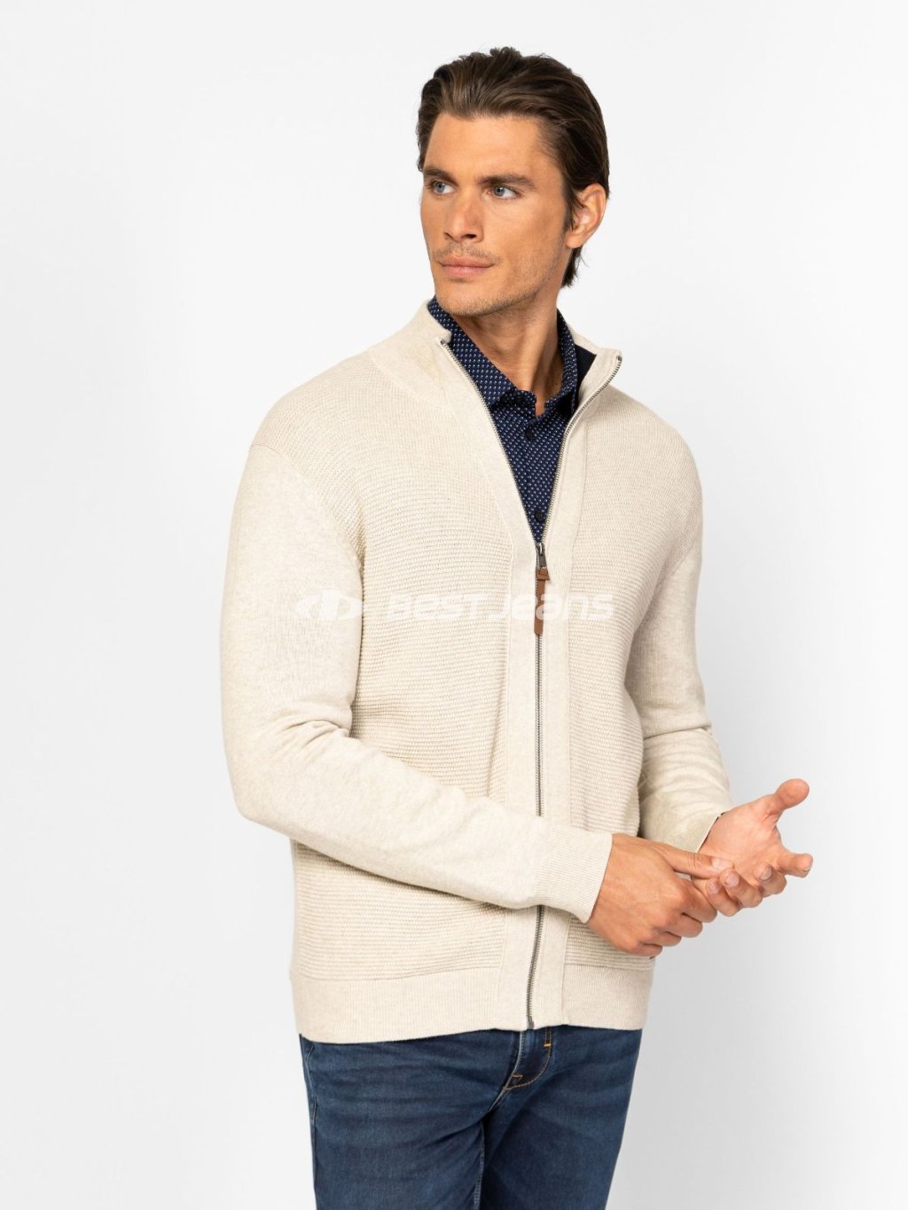 Pánský pletený propínací svetr Heavy Tools s žebrovaným stojáčkovým límcem a žebrovanými lemy kolem rukávů a na spodní části. Malé kovové a kožené logo vpředu dole. Klasický střih.