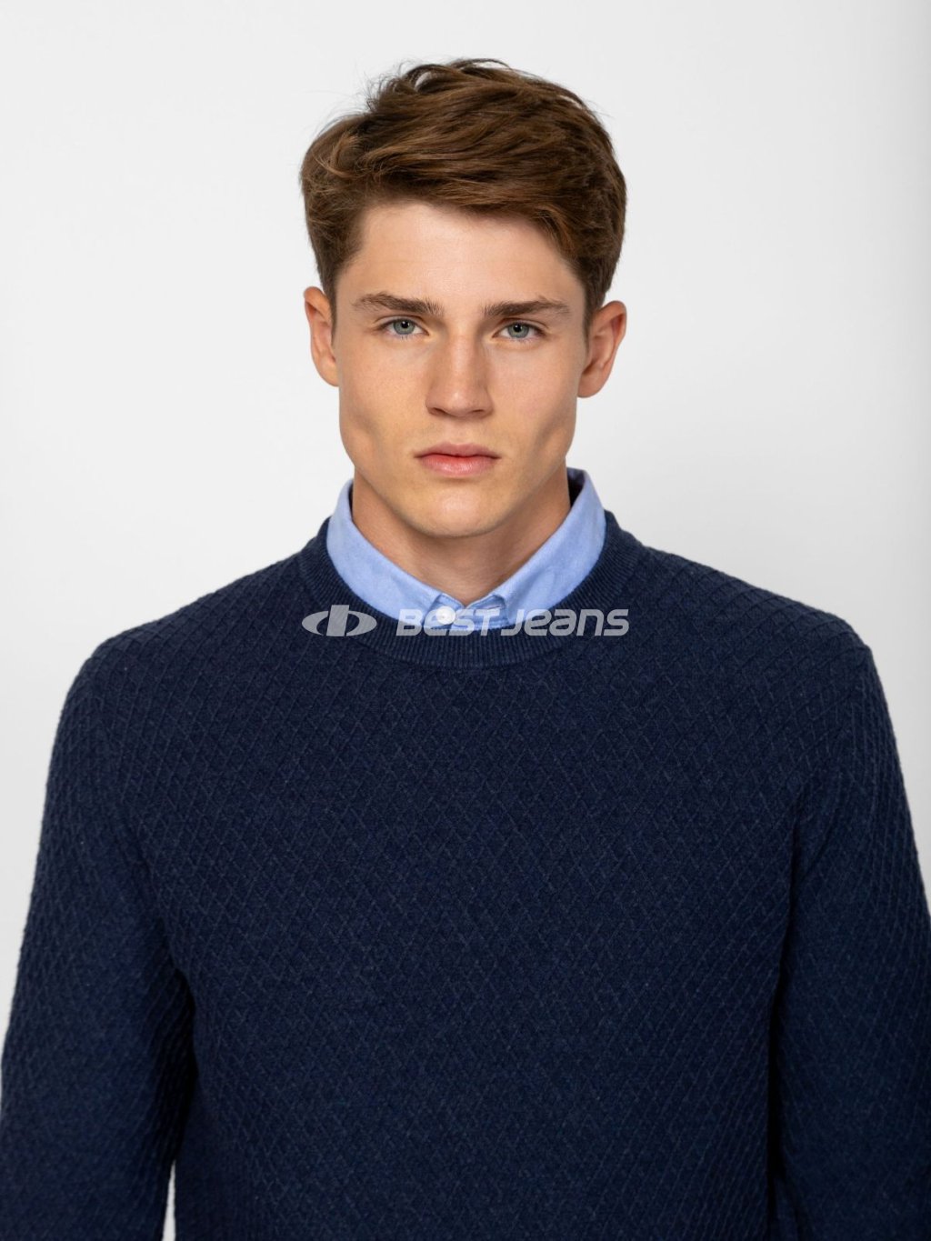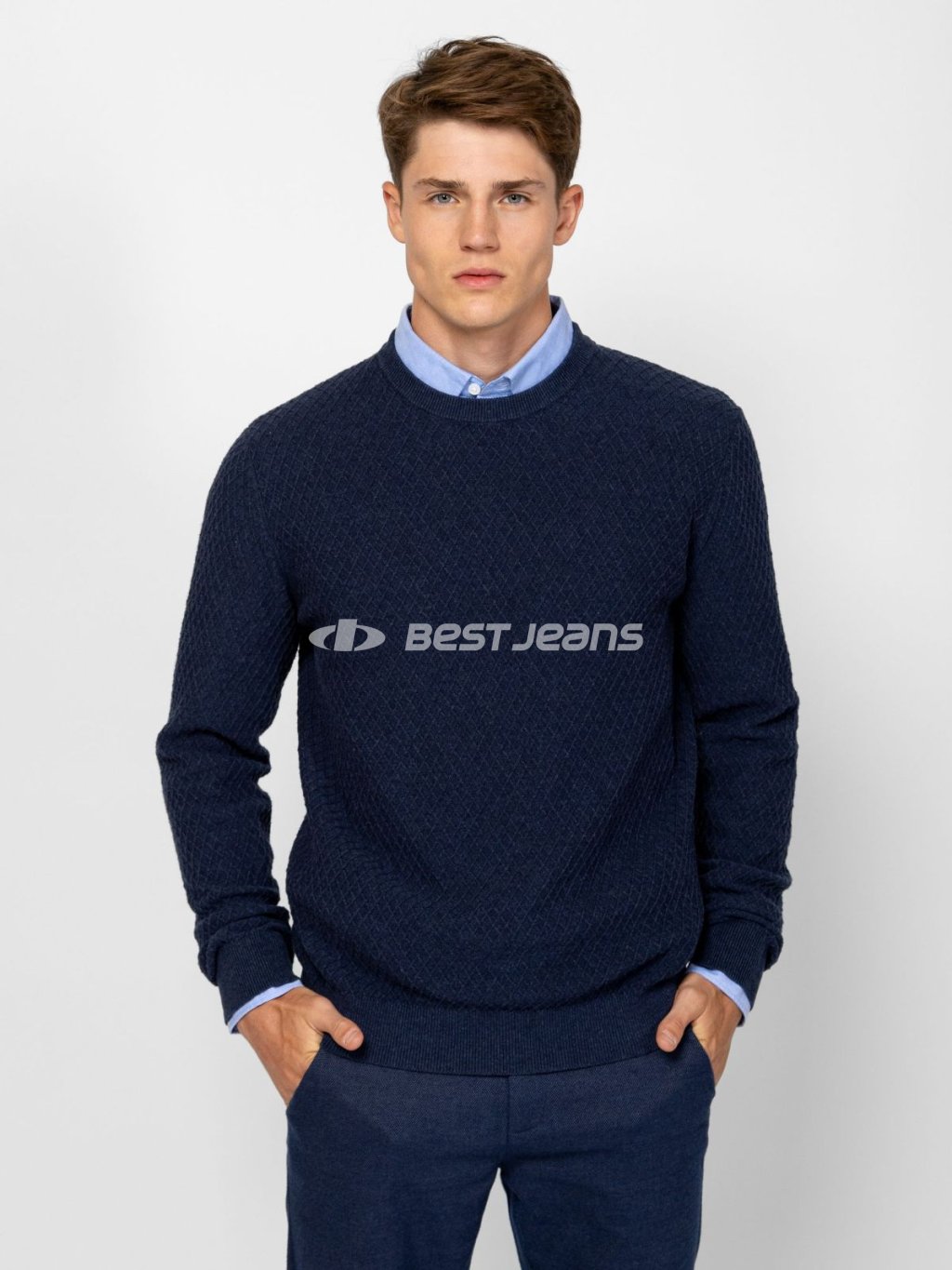 Pánský pletený pulovr Heavy Tools se stylovým vzorem úpletu, kulatým výstřihem a žebrovanými lemy kolem rukávů a na spodním okraji. Malý kožený štítek na spodní části vpředu.