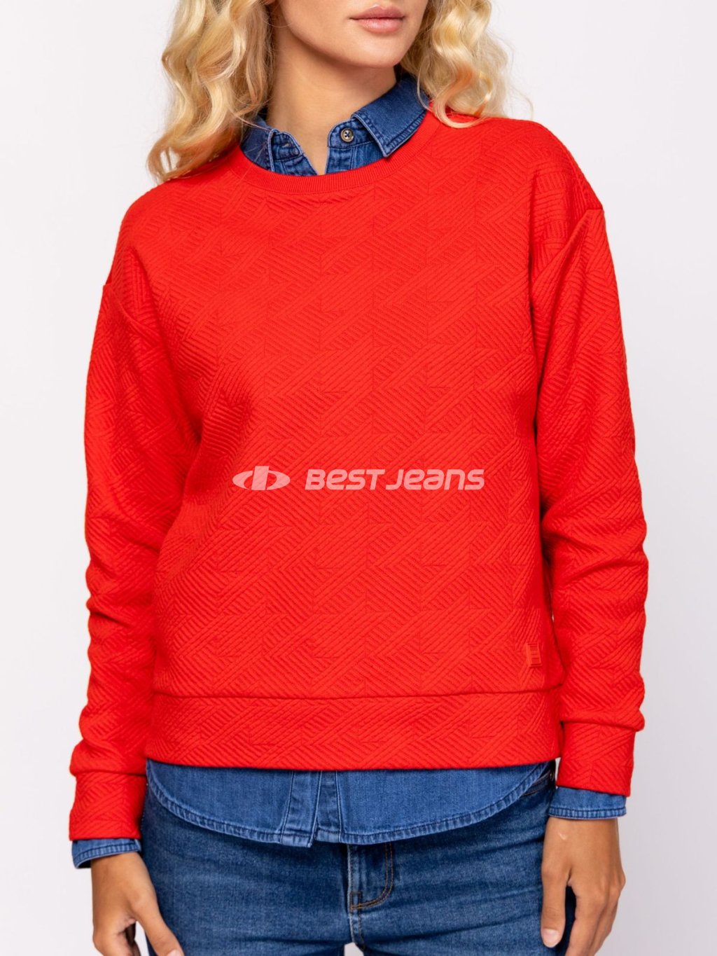 Dámska mikina Heavy Tools širšího střihu s kulatým výstřihem, spadlými rameny a elastickým lemem na konci rukávů a ve spodní části. Žakárový úplet, plastický vzor.