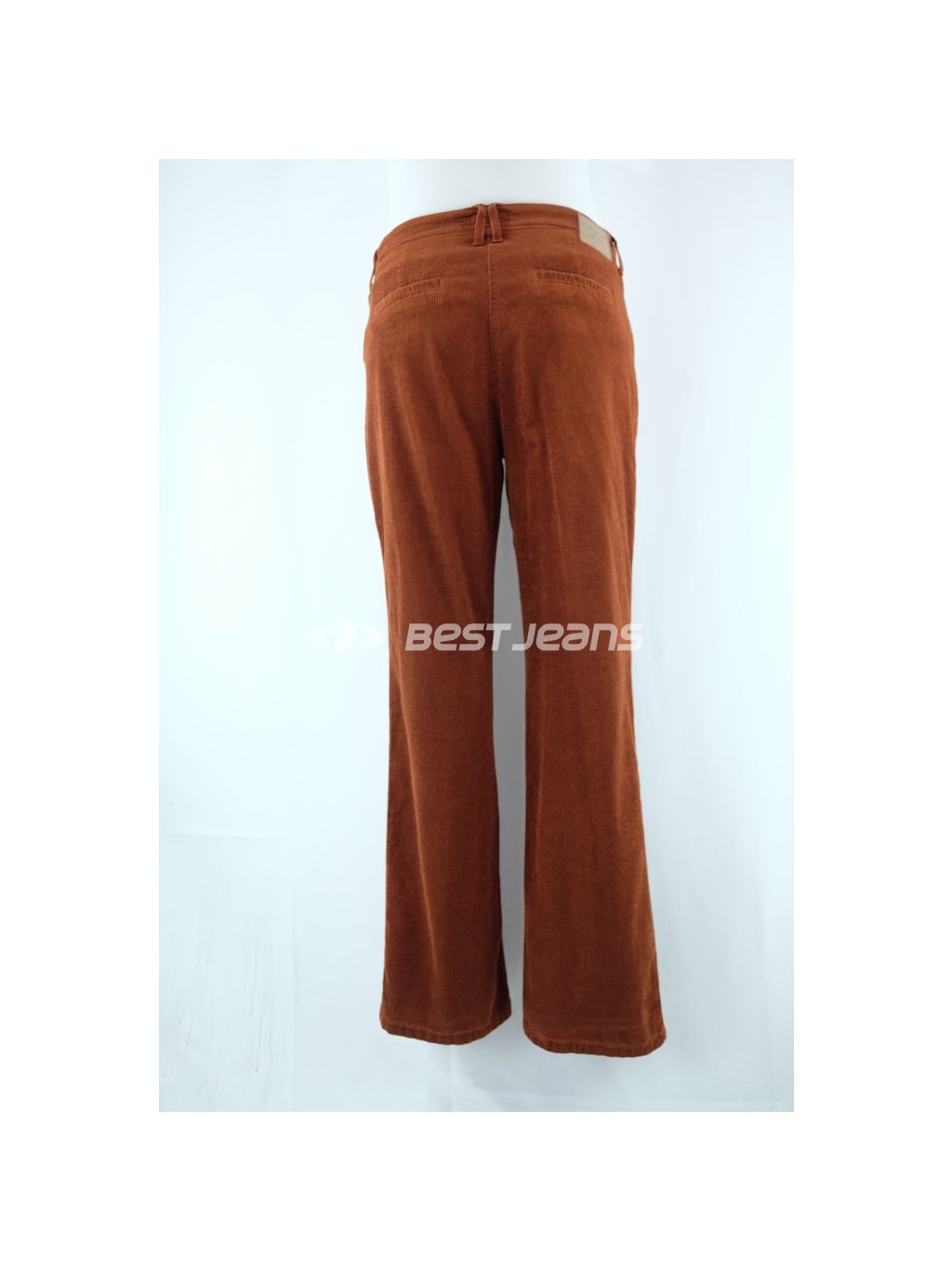 Dámske menčestrové nohavice Pioneer volného střihu Rosie v cihlové barvě. Jsou vyrobeny z měkkého, pohodlného a pružného materiálu s příměsí polyesteru a elastanu. Tyto stylové nohavice jsou oblíbené především díky volným nohavicím a mírně vyššímu pasu.