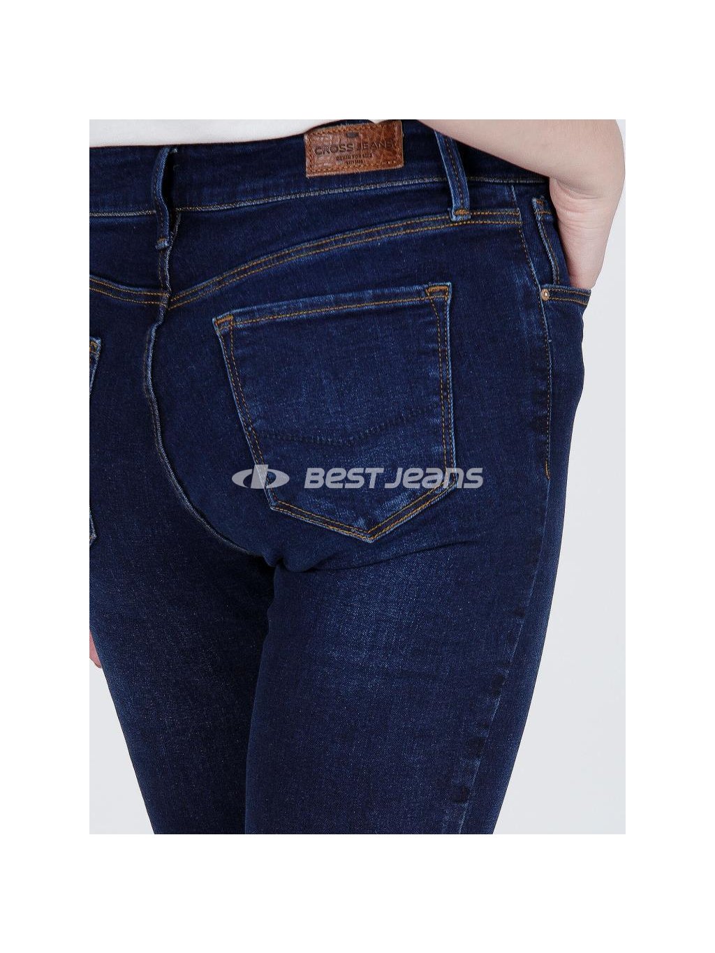 Dámske džínsy Cross tmavšího odstínu modré barvy s lehkým šoupáním v dobře padnoucím střihu ANYA. Tyto elegantní jeans dokonale kopírují tvar dámské postavy a jsou oblíbené především díky úzkým nohavicím až ke kotníkům a vysokému pasu. Díky příměsi elastanu jsou nohavice velmi pohodlné.