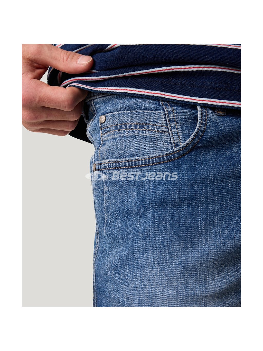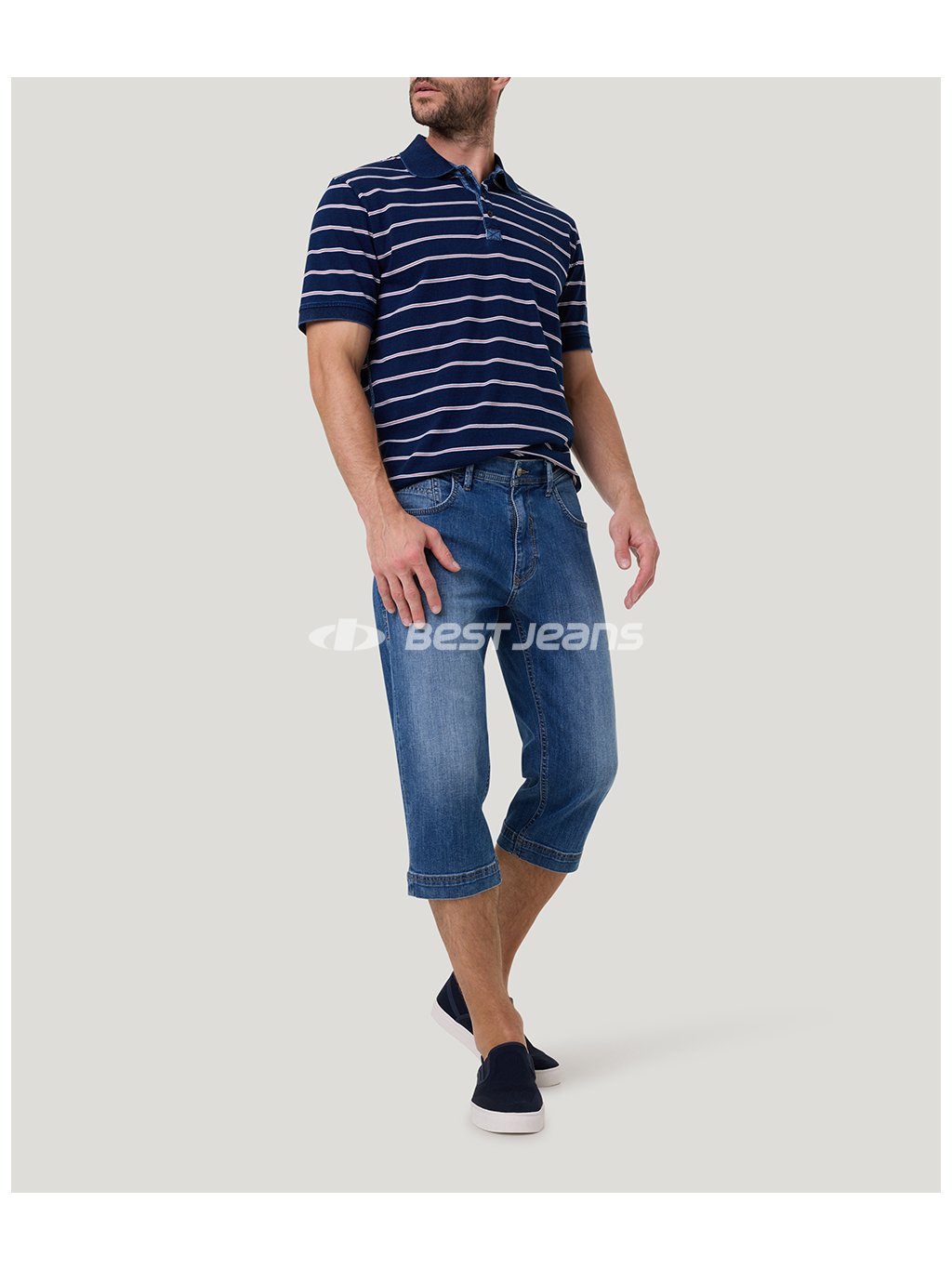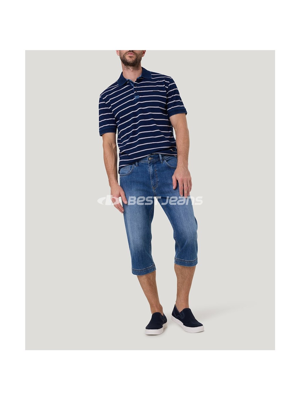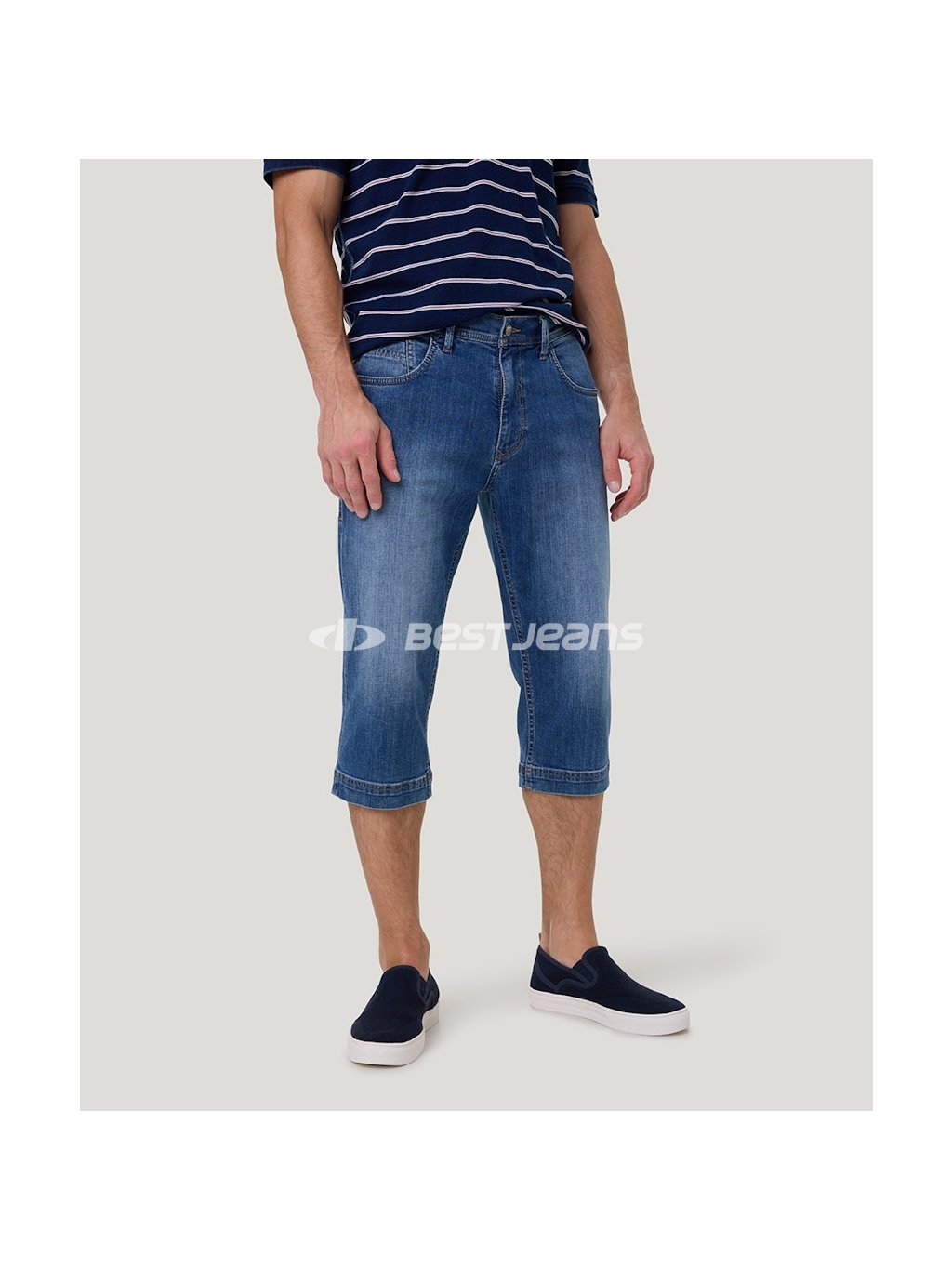 Elegantní pánské pěti kapsové tříčtvrťáky střihu BILL se středním sedem, přičemž přední pozice je nižší než zadní. Jsou vyrobeny z lehkého středně modrého denimu a jsou prošity dvojitým stehem žlutou nití včetně originálního ozdobného prošití zadních kapes. Mají mosazné nýty a knoflík s logem značky. Vzadu na pasu nechybí nášivka PIONEER AUTHENTIC JEANS. Vhodné doplnit koženým opaskem.