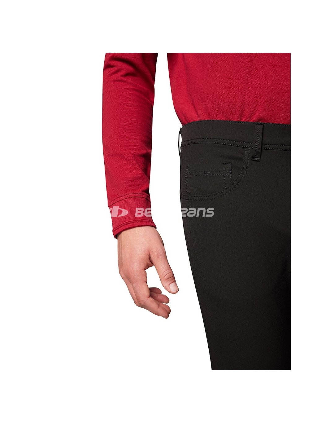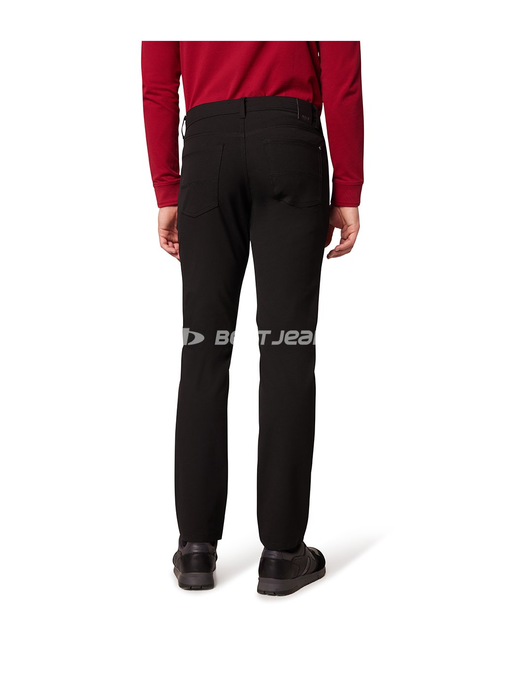 Elegantní pánské nohavice klasického střihu RANDO se středním, vzadu mírně vyšším sedem a rovnými nohavicemi. Jsou vyrobeny z příjemné, pružné, černé látky, prošity nití v černém tónu včetně originálního ozdobného prošití zadních kapes. Mají mosazné nýty a knoflík s logem značky. Vzadu na pasu nechybí kožená nášivka PIONEER AUTHENTIC JEANS.