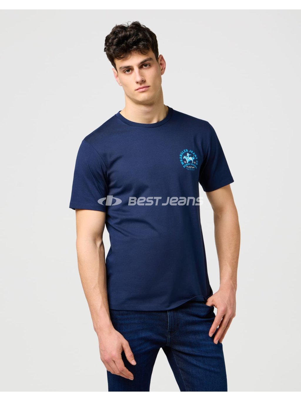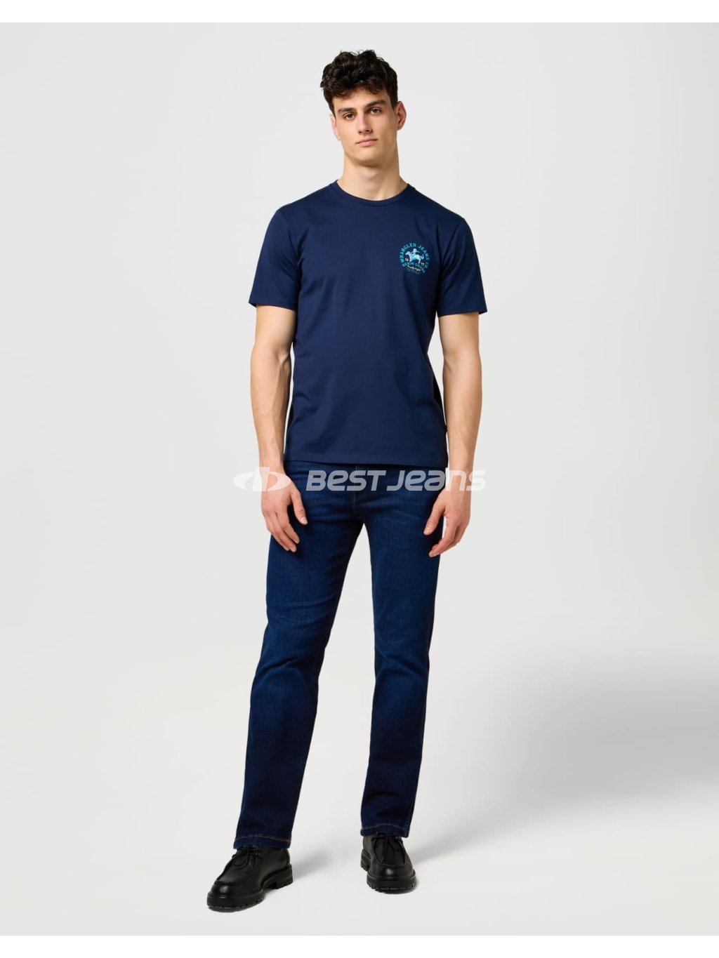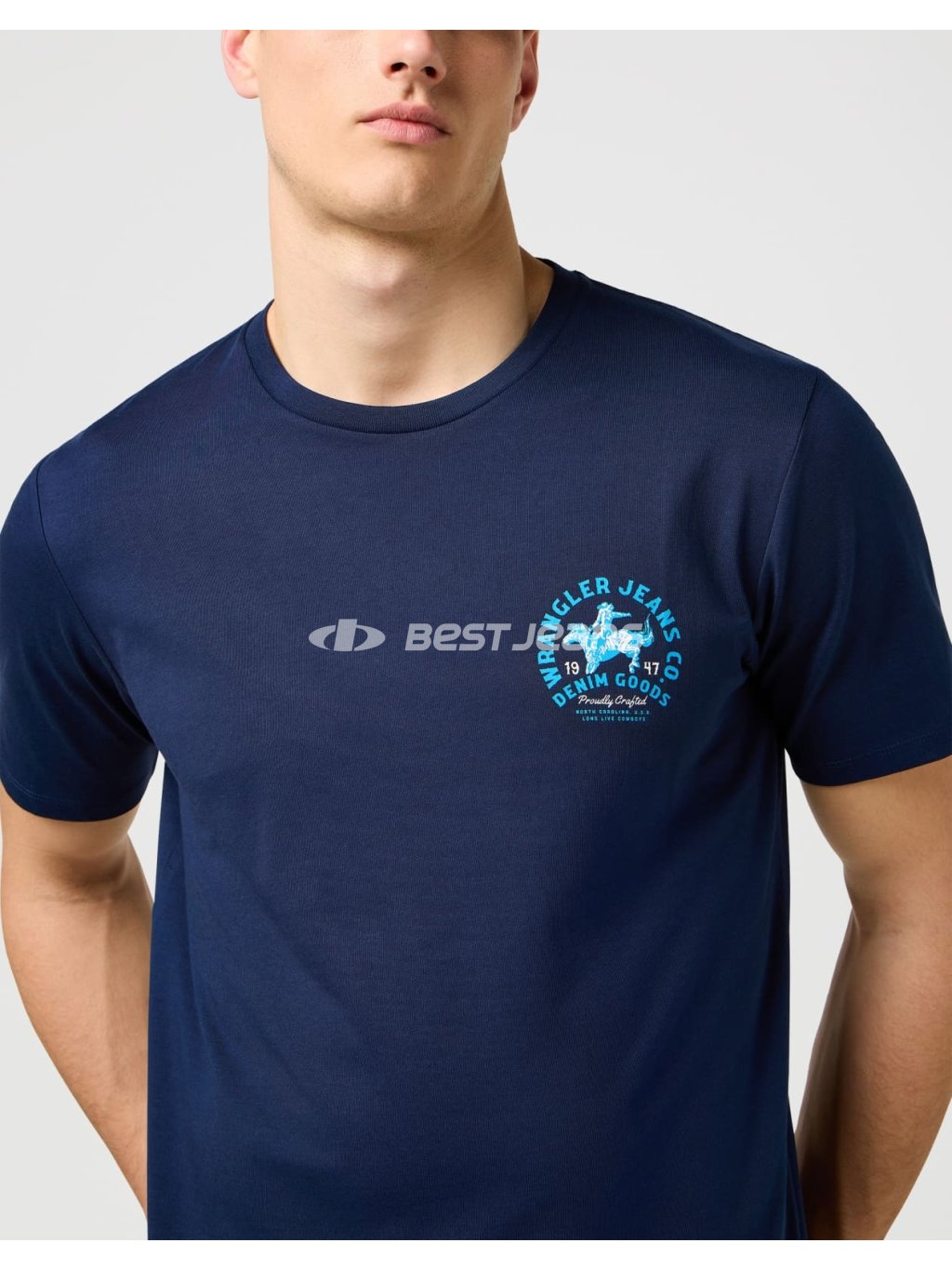 Pánske tričko Wrangler s krátkým rukávem s malým potiskem. Z nekrčivé látky Heavy Jersey o vyšší gramáži.