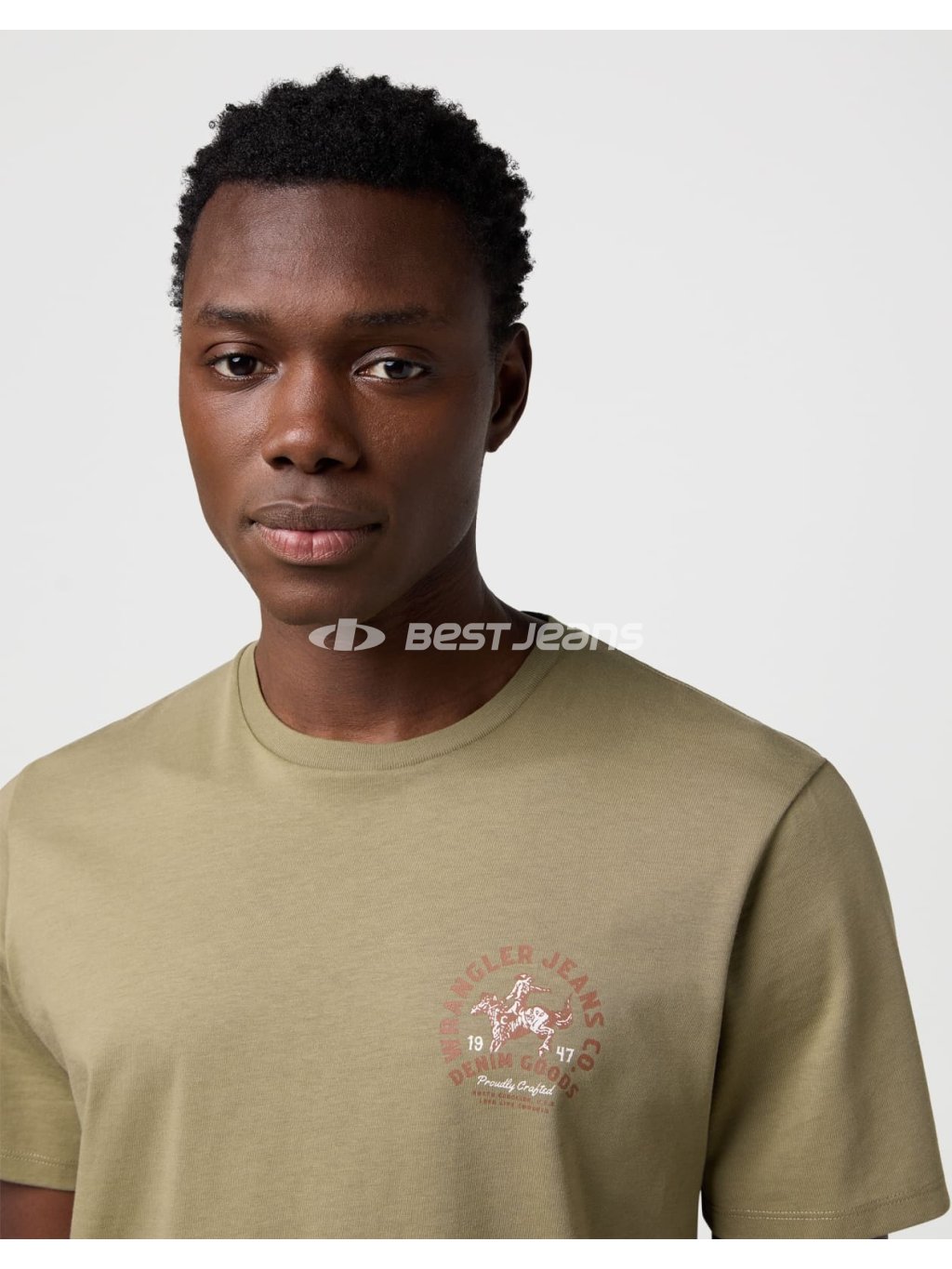Pánske tričko Wrangler s krátkým rukávem s malým potiskem. Z nekrčivé látky Heavy Jersey o vyšší gramáži.