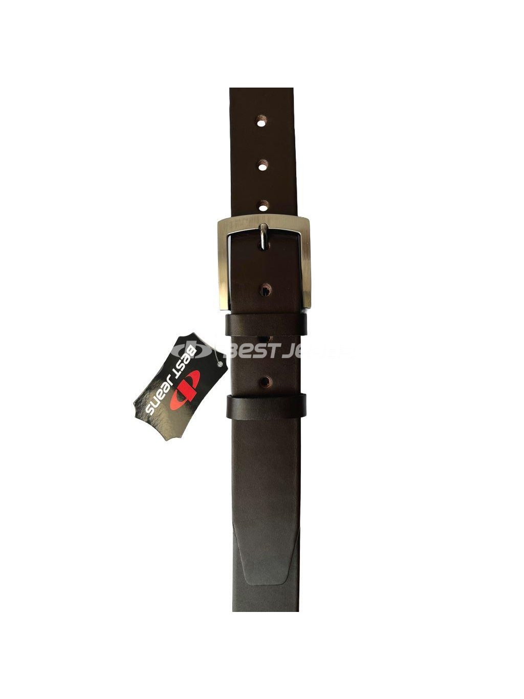 Prvotřídní pánský hnědý kožený opasok s pěknou kovovou sponou v povrchové úpravě nikl satinato (NKS) a pevným koženým poutkem. Tato spona obsahuje nikl.
